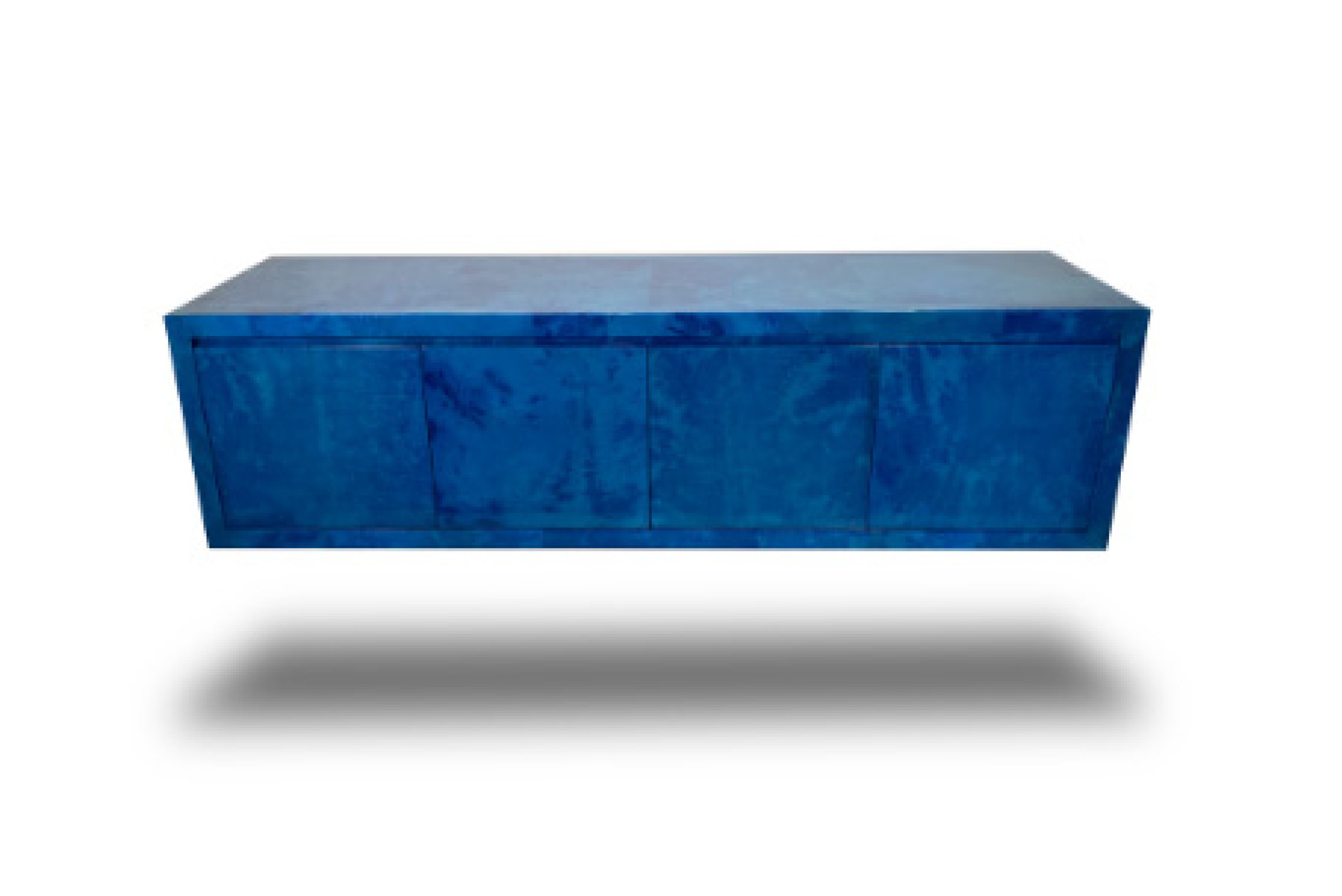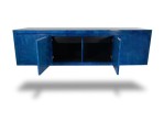 Karl Springer Ltd Mid-Century American Modern Lapis Goatskin "Royal Palm" 4 door Server / Credenza