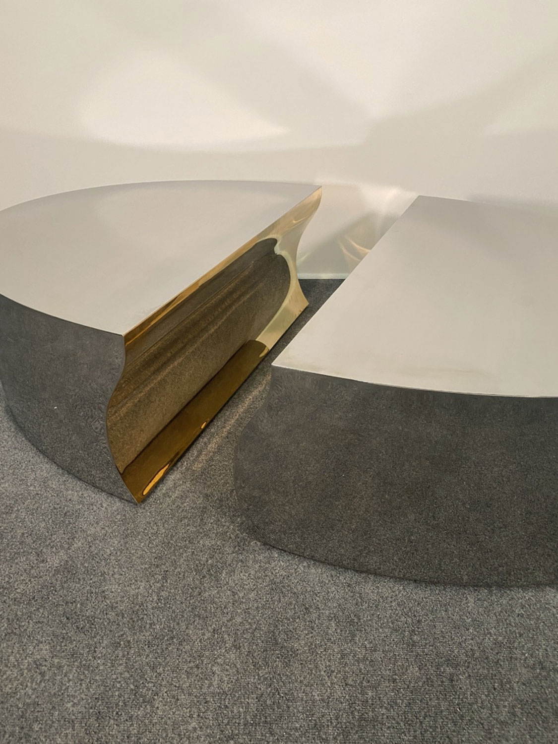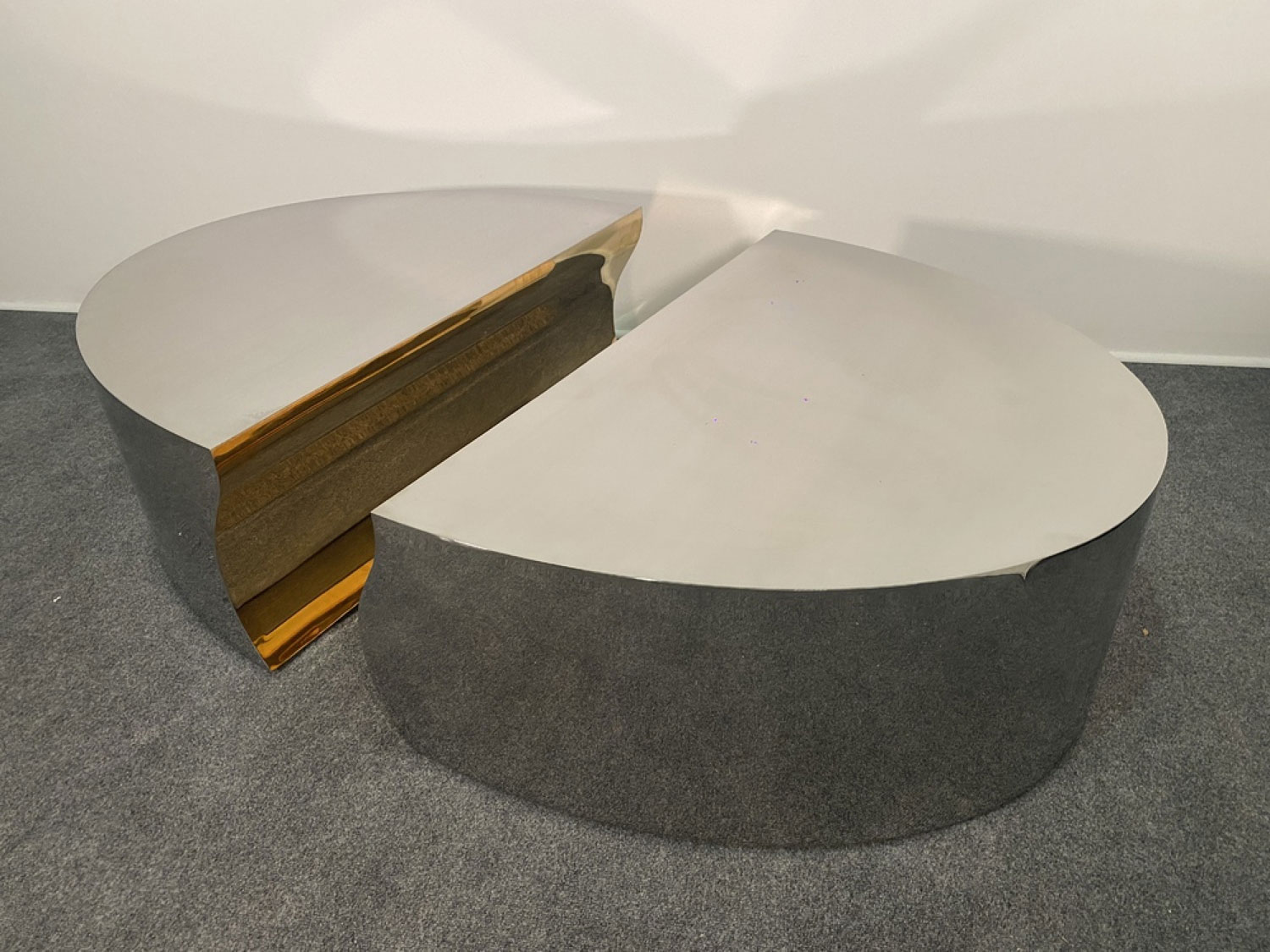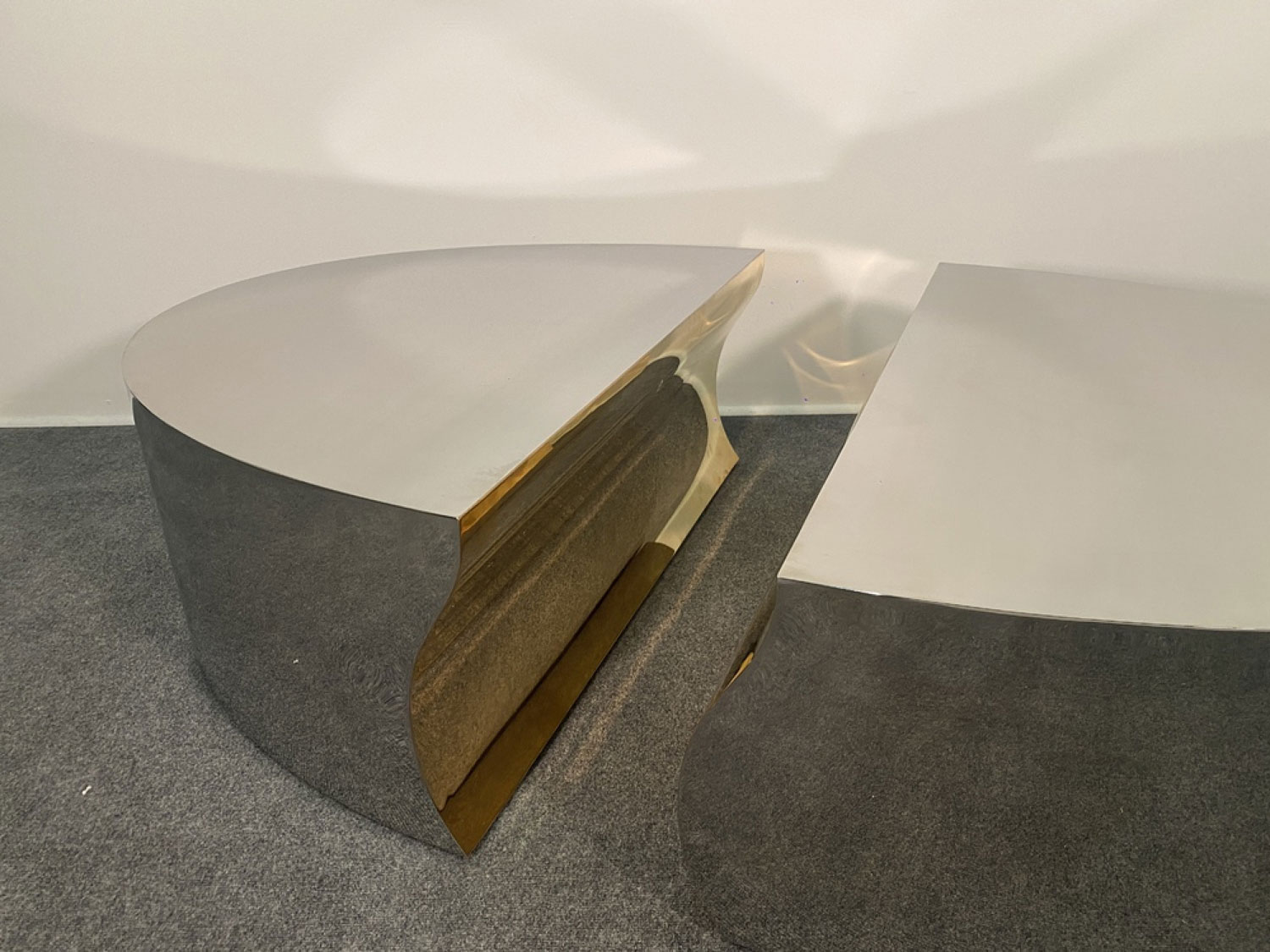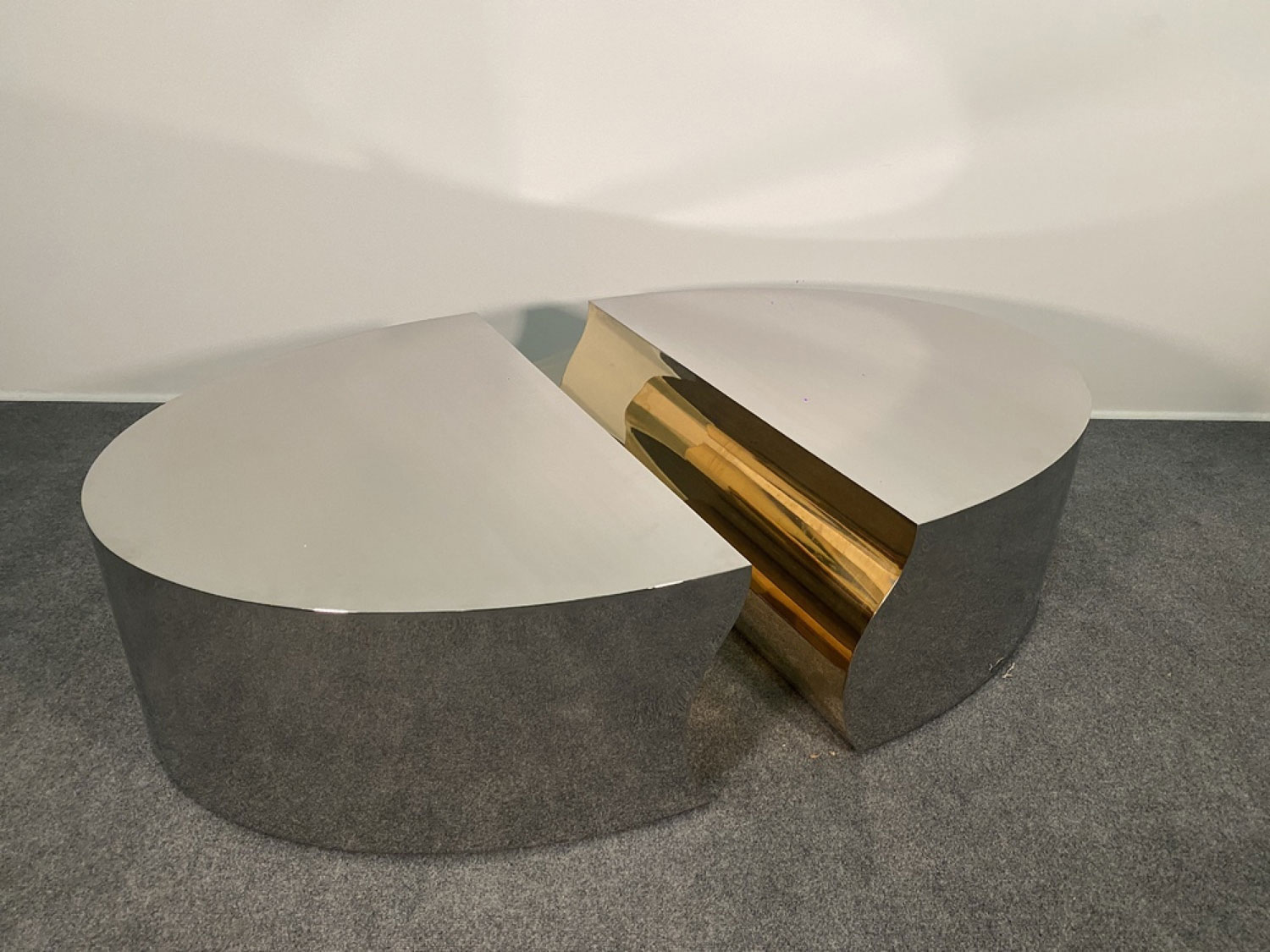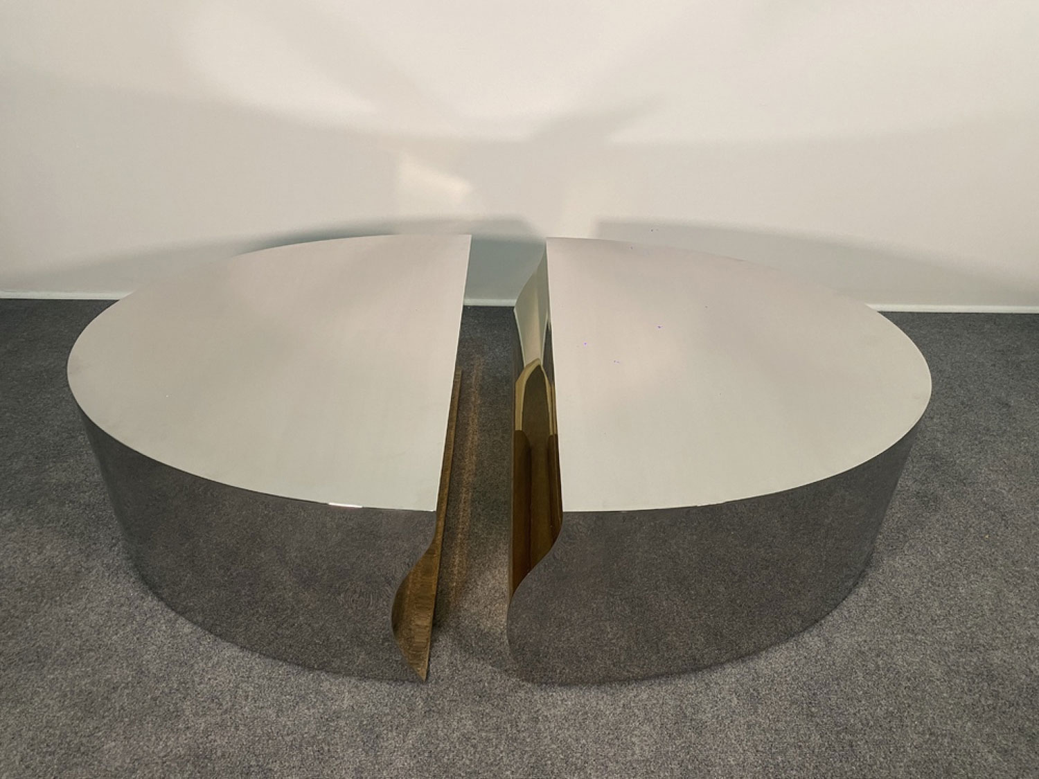 Mid-Century American Modern Stainless Steel & Bronze Center Freeform Cocktail Table (KARL SPRINGER).