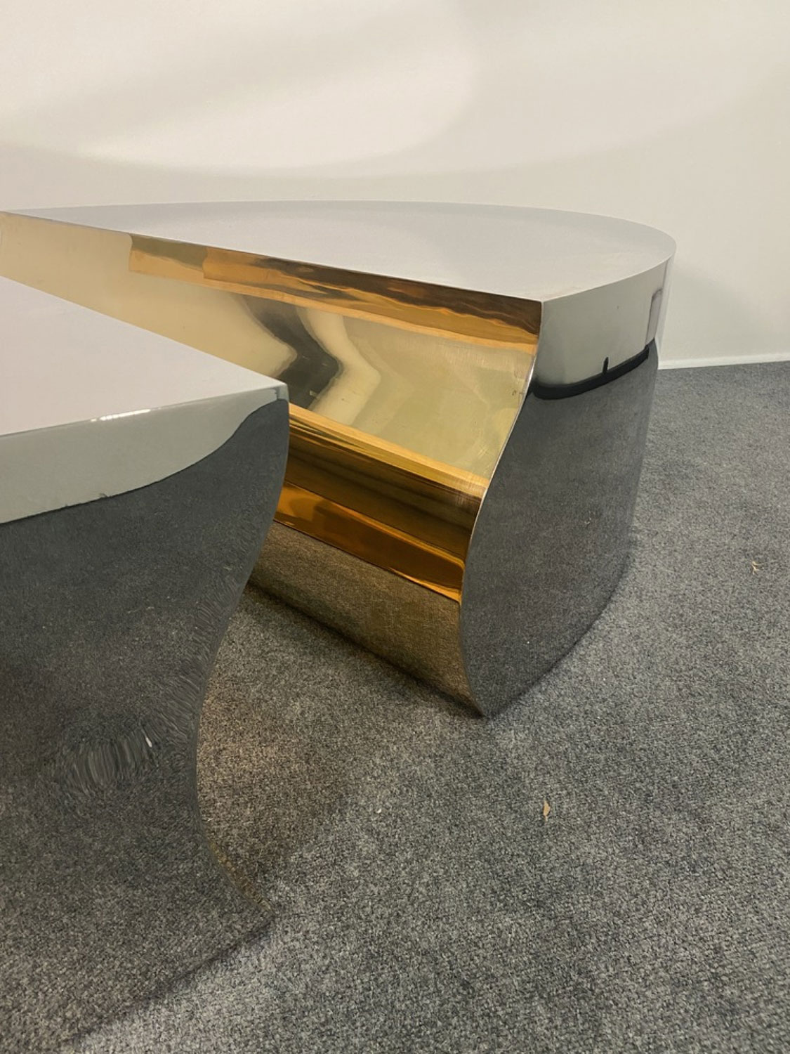 Mid-Century American Modern Stainless Steel & Bronze Center Freeform Cocktail Table (KARL SPRINGER)