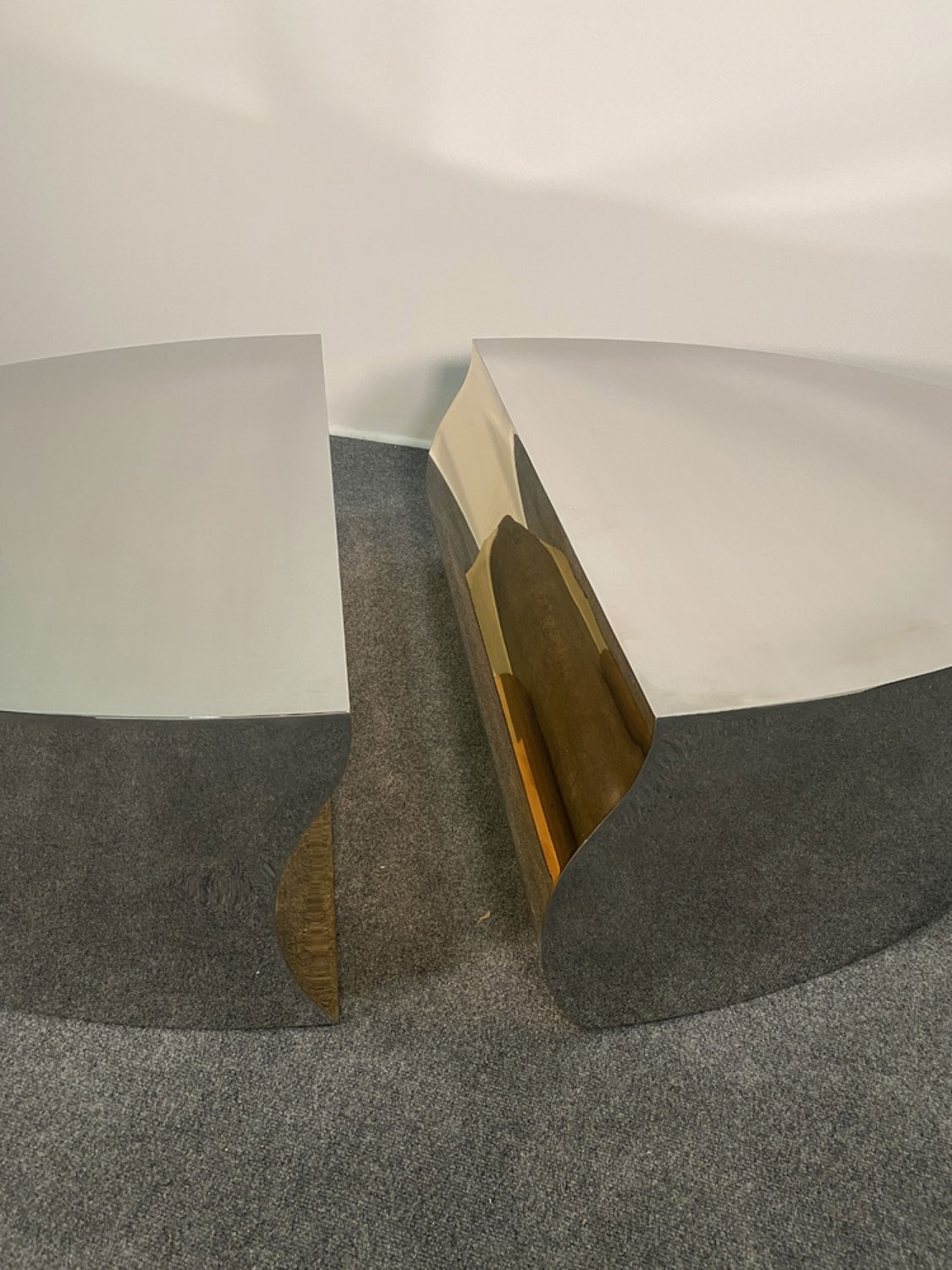 Style: Mid-Century Materials & Techniques: Bronze, chrome Category: Tables