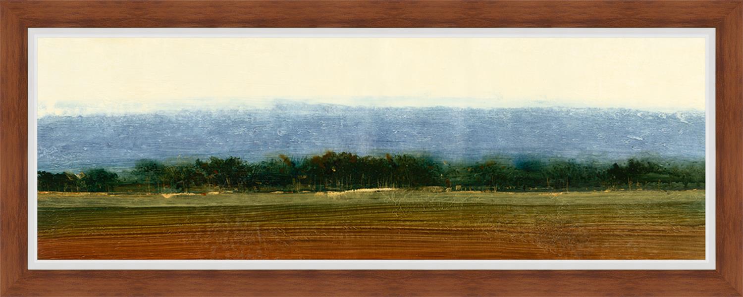 "Planting Season I", horizontal landscape painting, Giclee art print framed in a dark wood frame