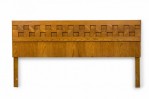 American Mid-Century king-size cubist design blond wood headboard with 2 rows of decorative square cut-outs. (LANE FURNITURE).