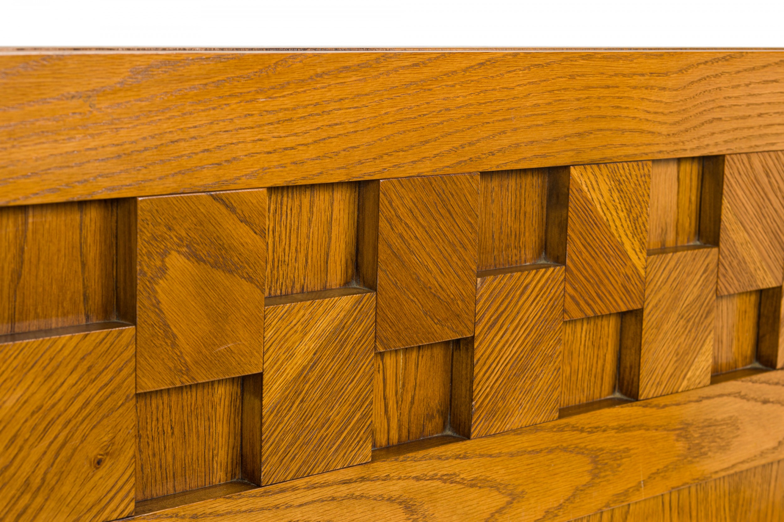 American Mid-Century king-size cubist design blond wood headboard with 2 rows of decorative square cut-outs. (LANE FURNITURE)