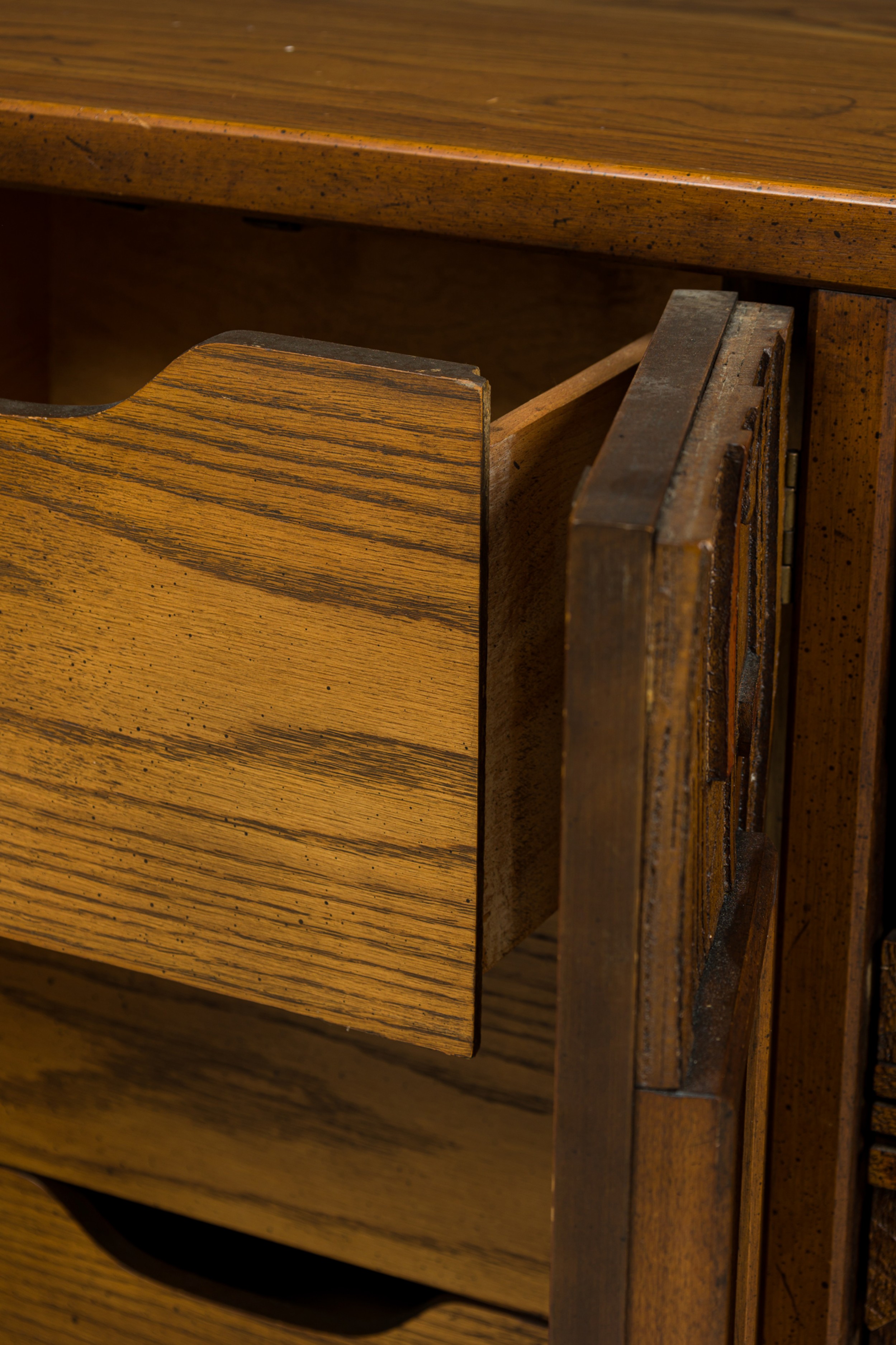 Lane Furniture Mid-Century American Modern Brutalist Carved Front Credenza / Sideboard