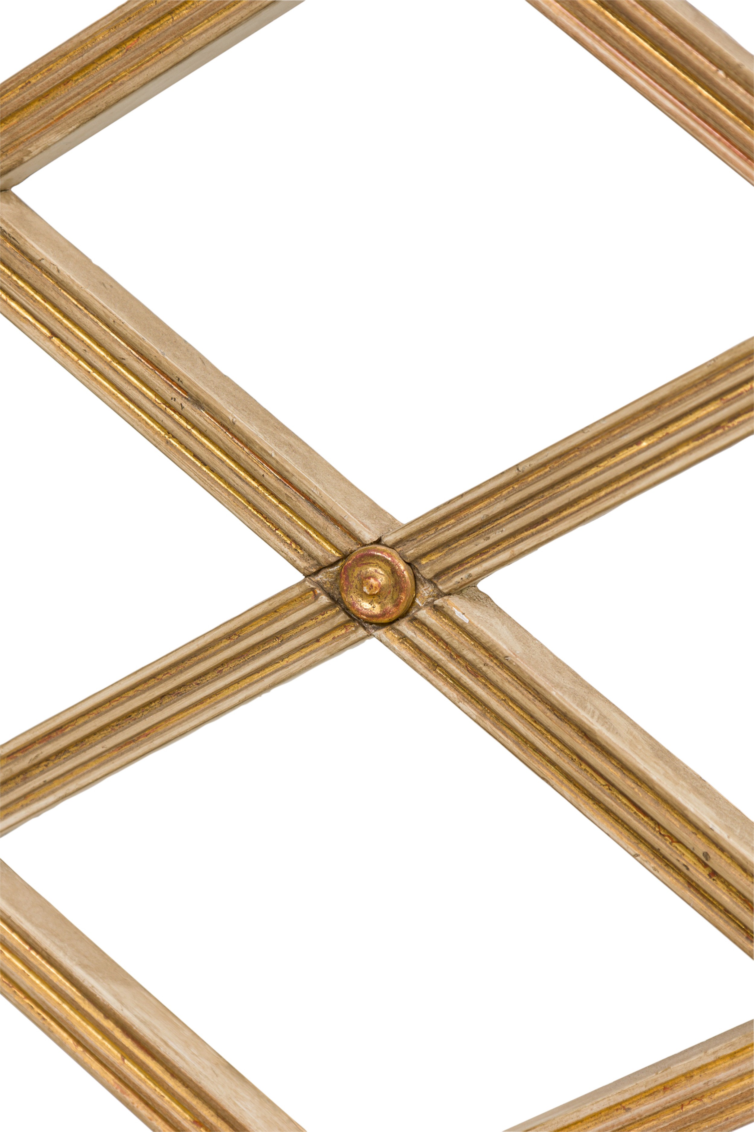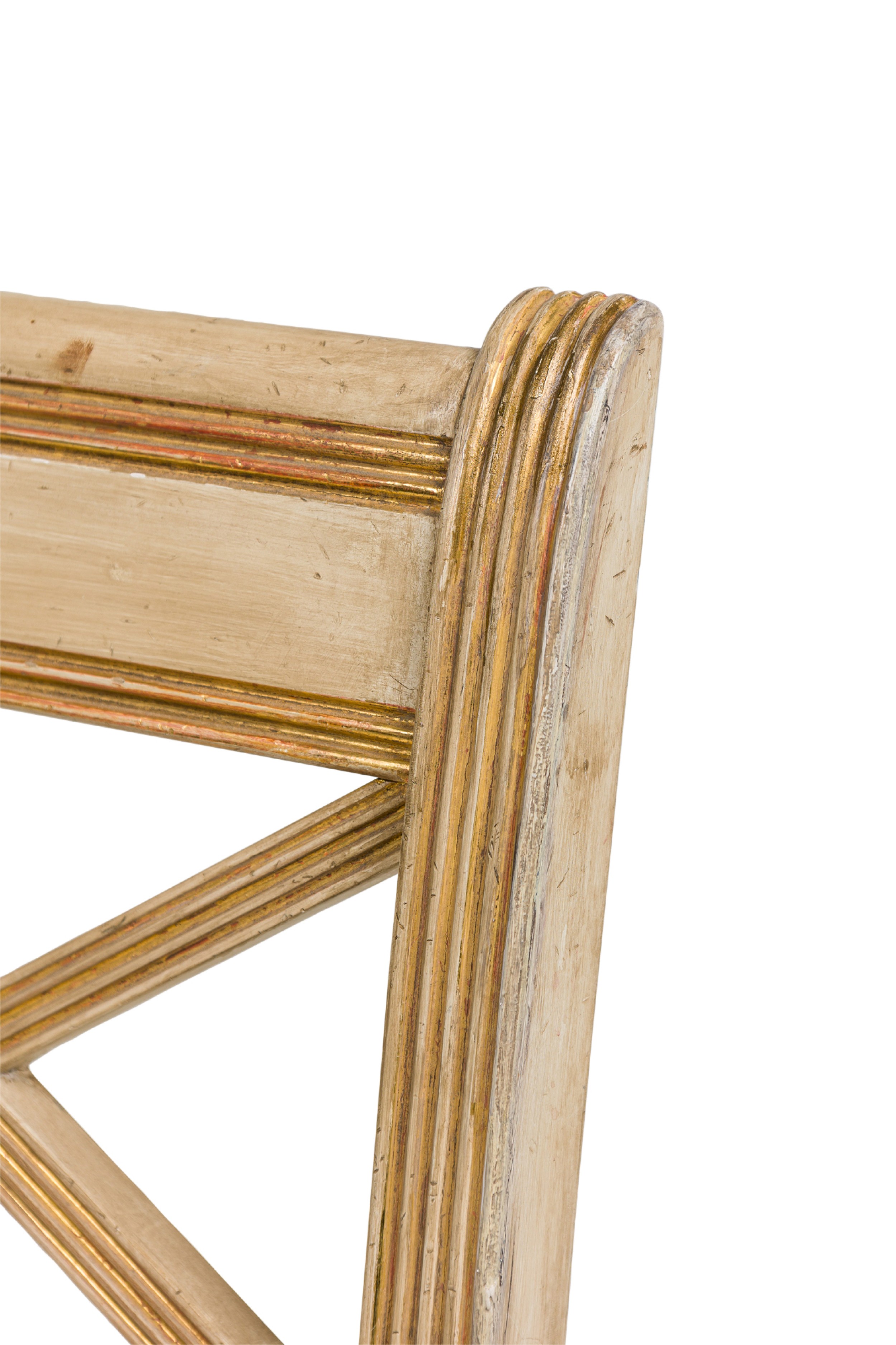 Italian Neo-Classic style (20th Century) cream painted and gilt trim side chair with fluted legs and open geomegtric diamond "X" design back with a stretcher and 0ff-white upholstered slip seat (matching armchair: REG9090)