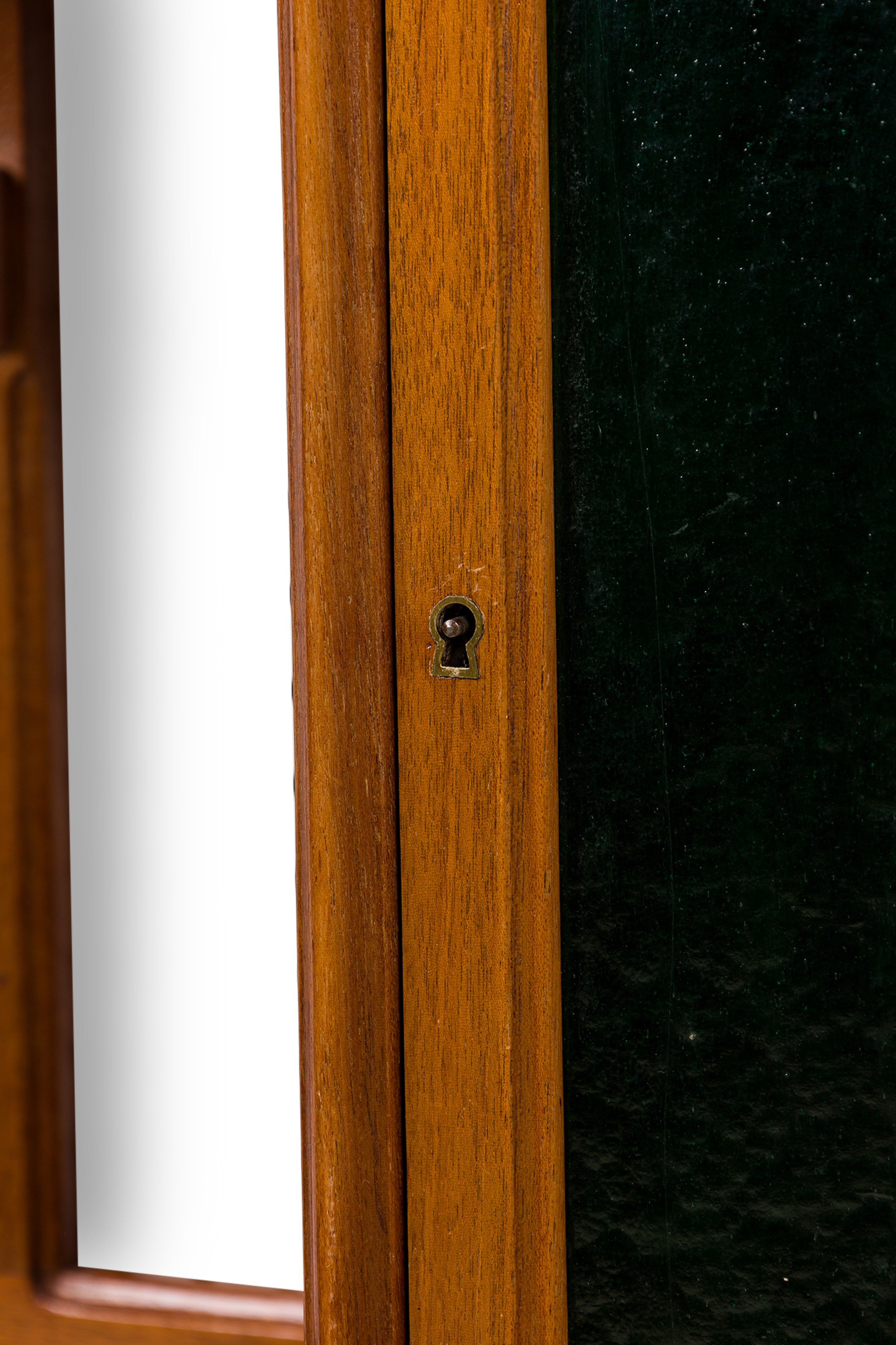 Style: Art Nouveau Materials & Techniques: Carved, glass, wood Category: Architectural/Columns Condition: Missing keys. Good; Wear consistent with age and use