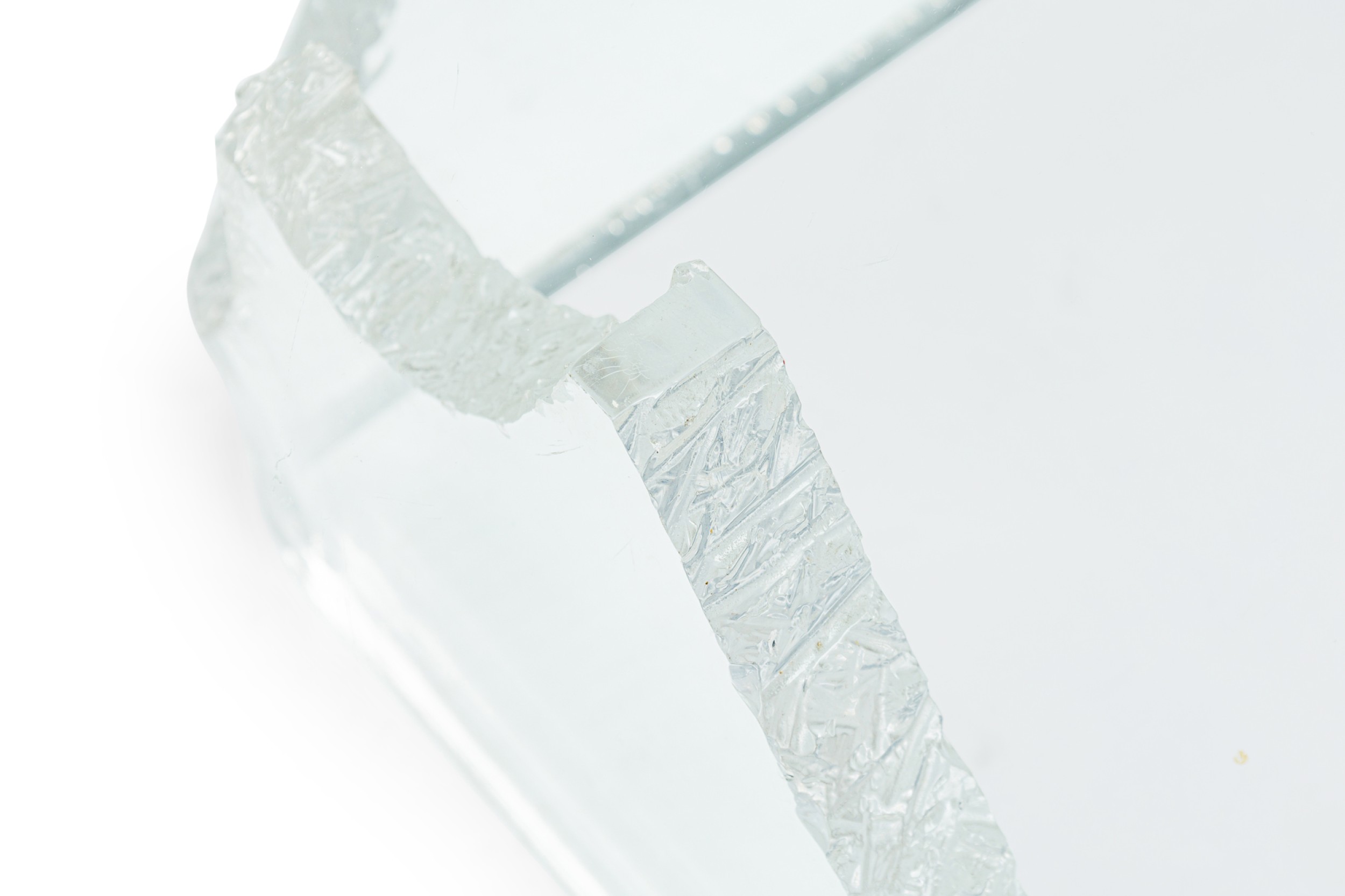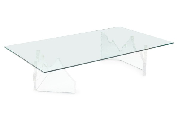 Mid-Century American lucite cocktail / coffee table made up of 2 iceberg form bases with the longer base being U-shaped and the shorter is V-shaped. (signed, LION IN FROST).