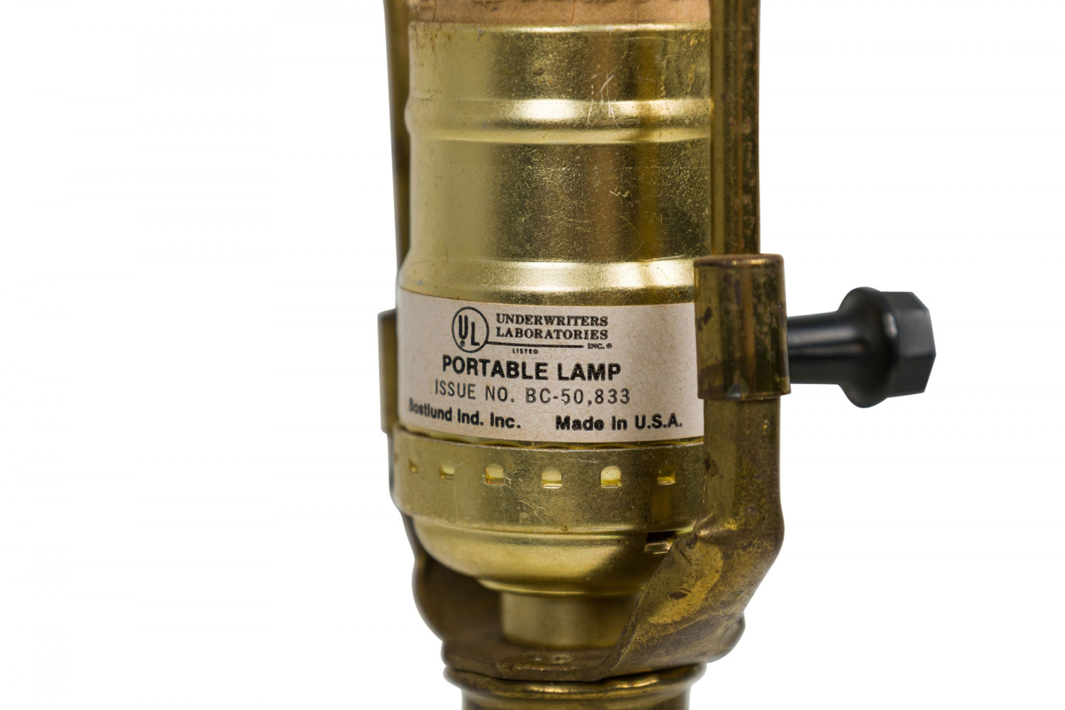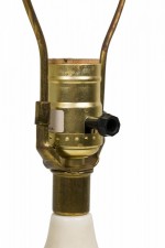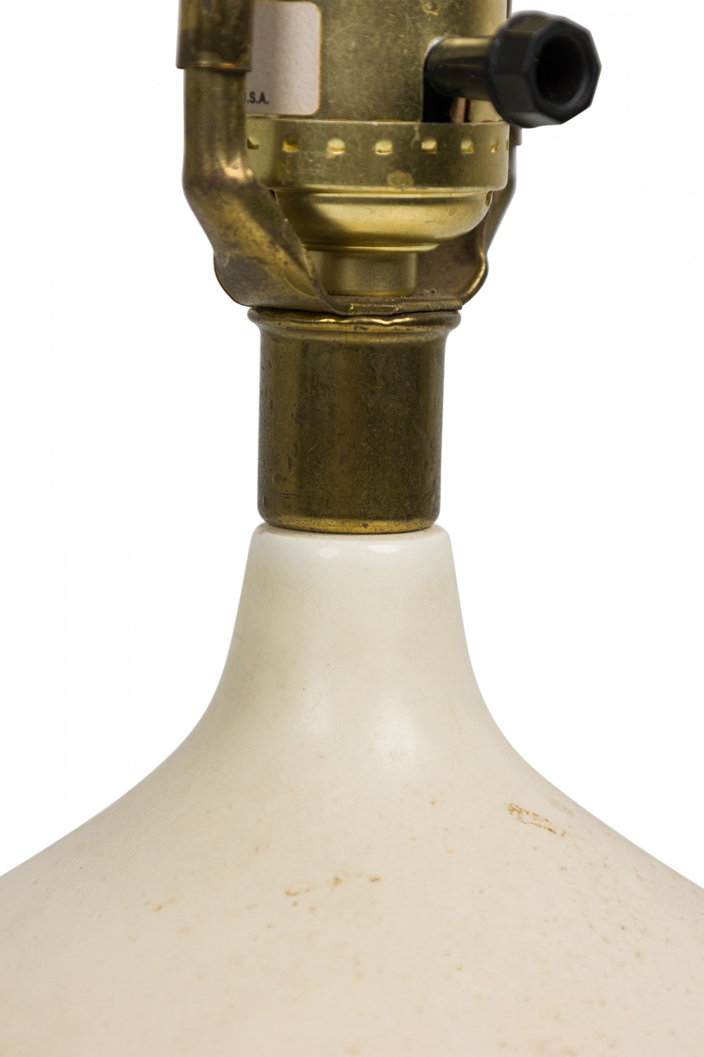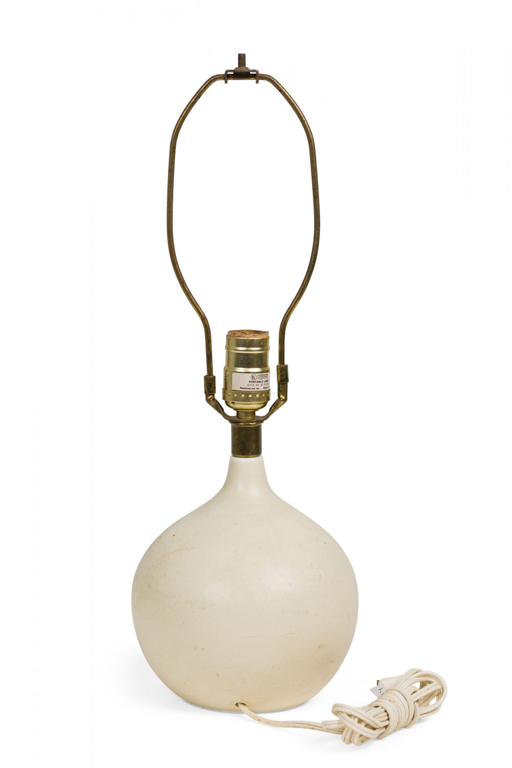 Style: Mid-Century Materials & Techniques: Brass, ceramic, metal Category: Lighting Condition: 19" height with harp, felt worn. Electrics working. Ships without shade. Good; Wear consistent with age and use