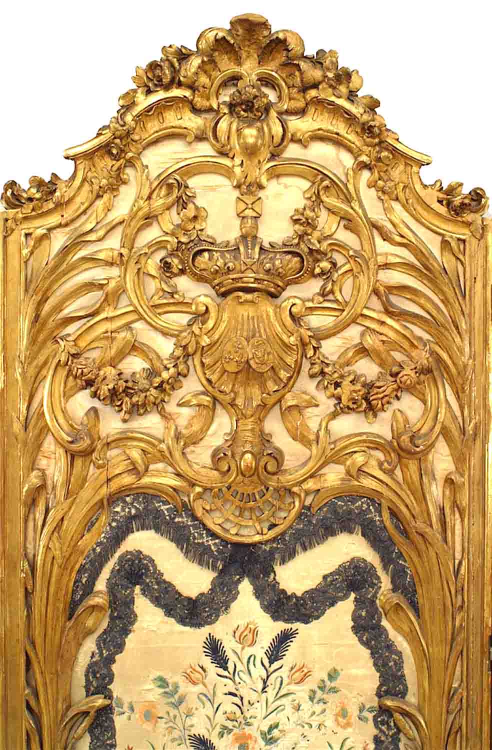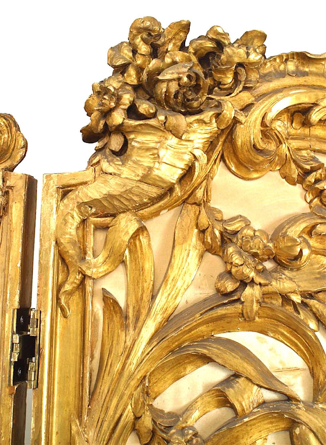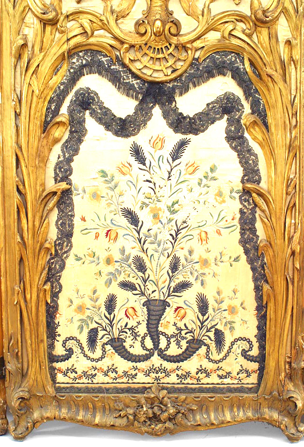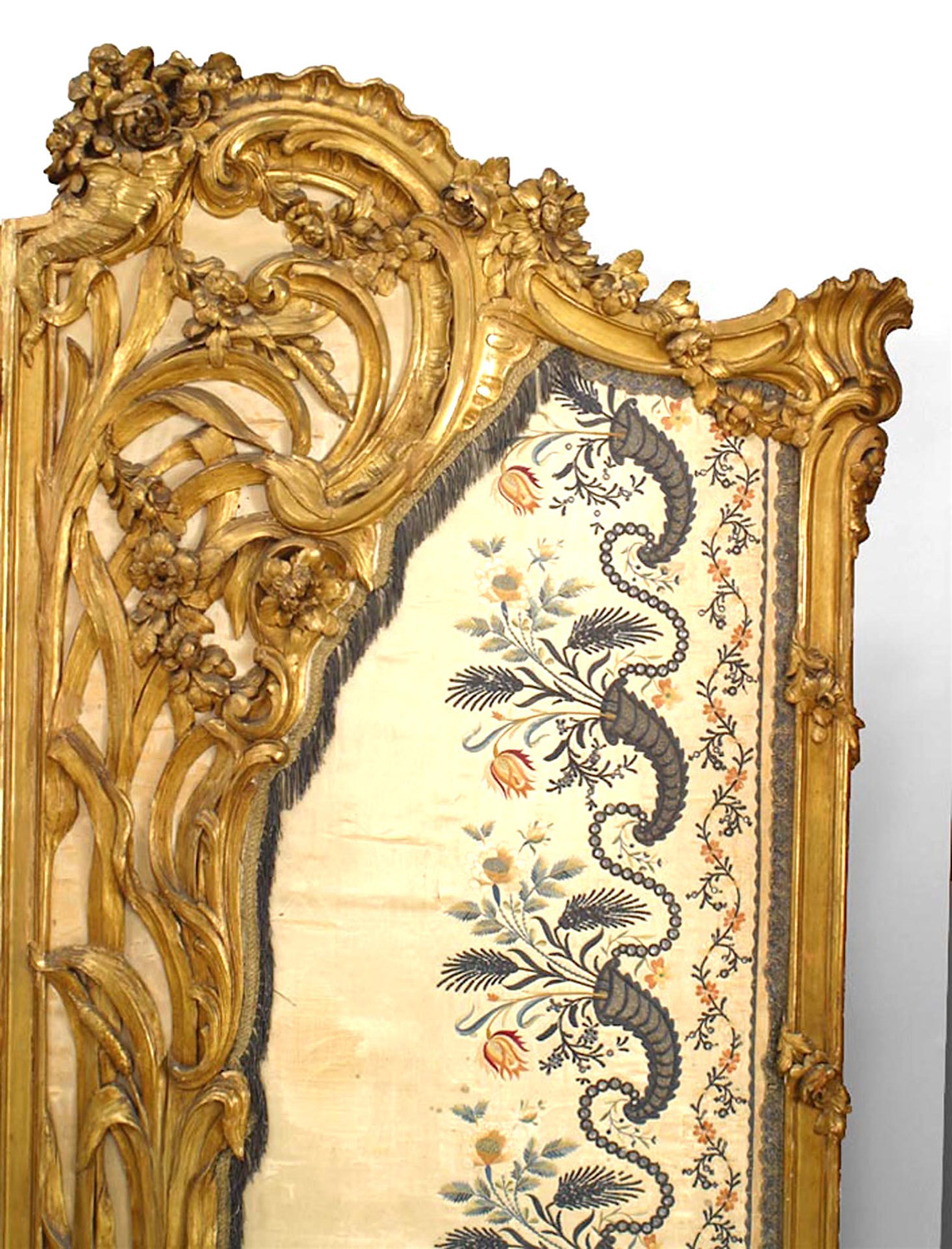 Louis XV Style Carved Gilt 3-Fold Screen with Embroidered Silk Panels