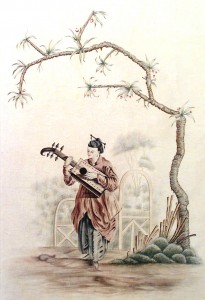 Louis XV Oil Celadon Chinoiserie Genre Scenes