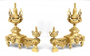 Pair of Louis XVI Bronze Urn Festoon Andirons