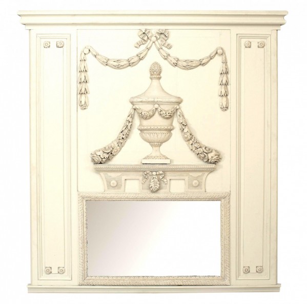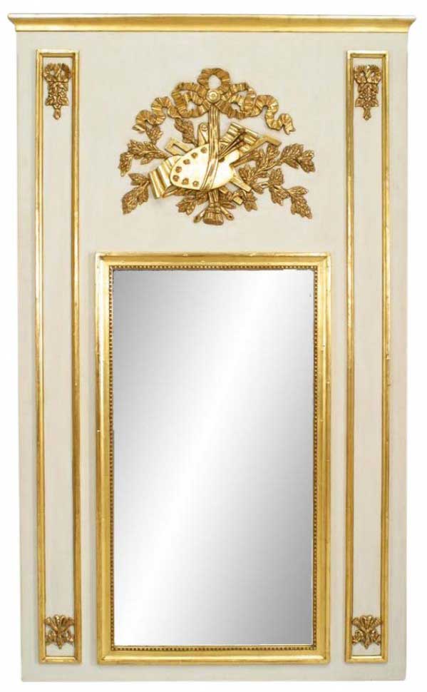 Louis XVI Style Painted and Gilt Trumeau / Wall Mirror