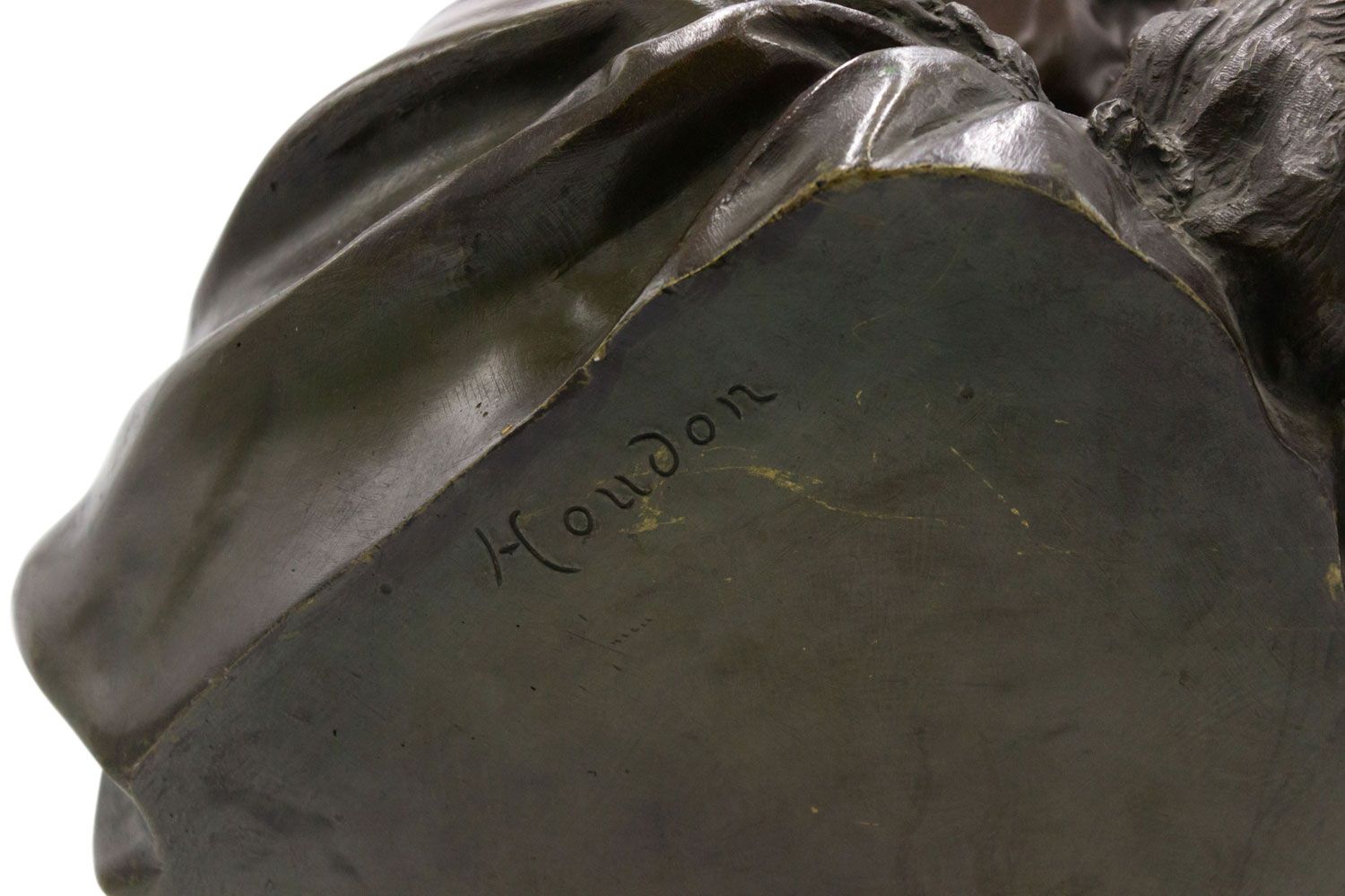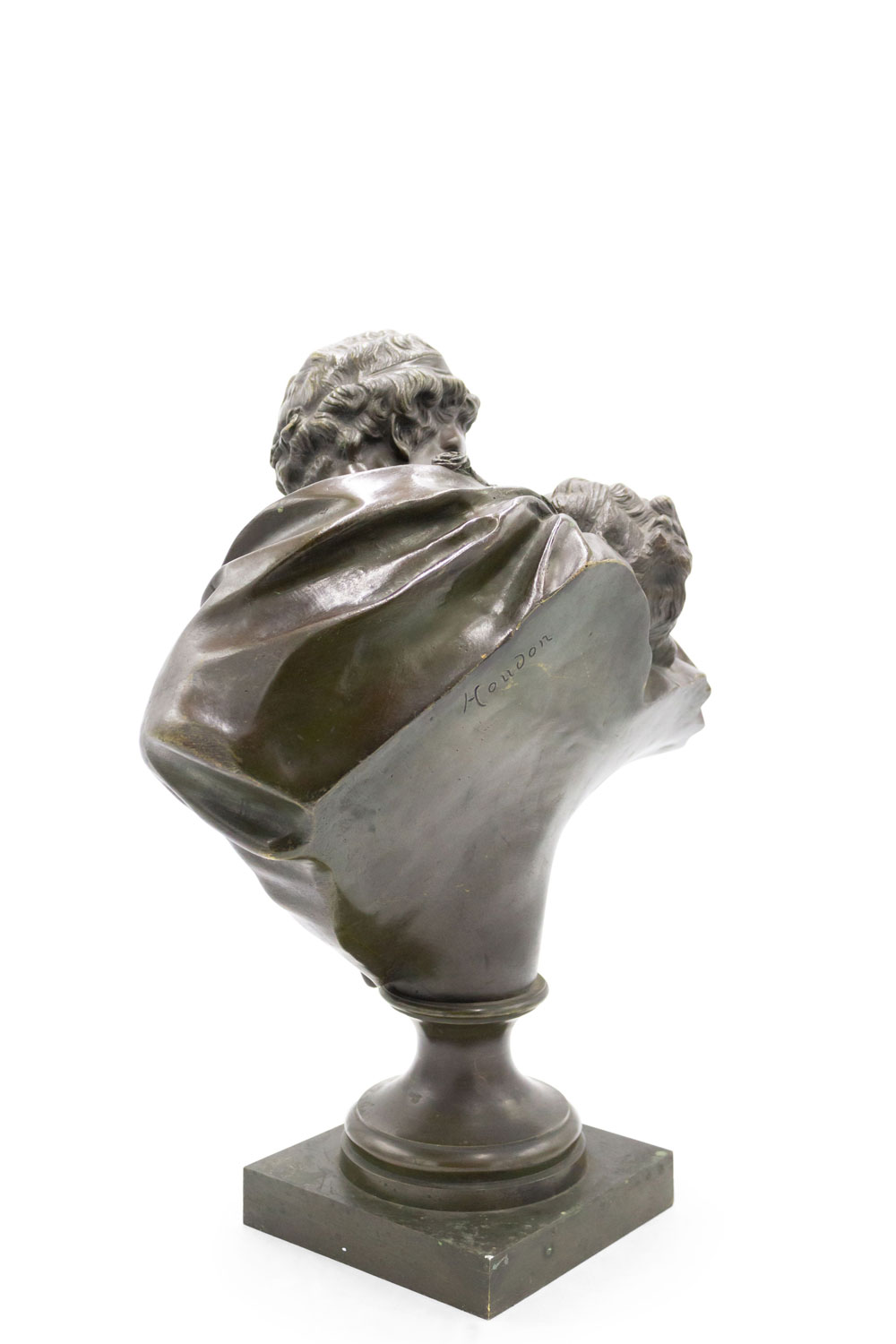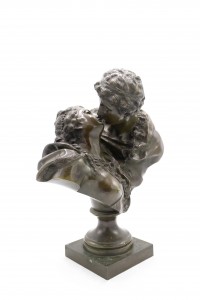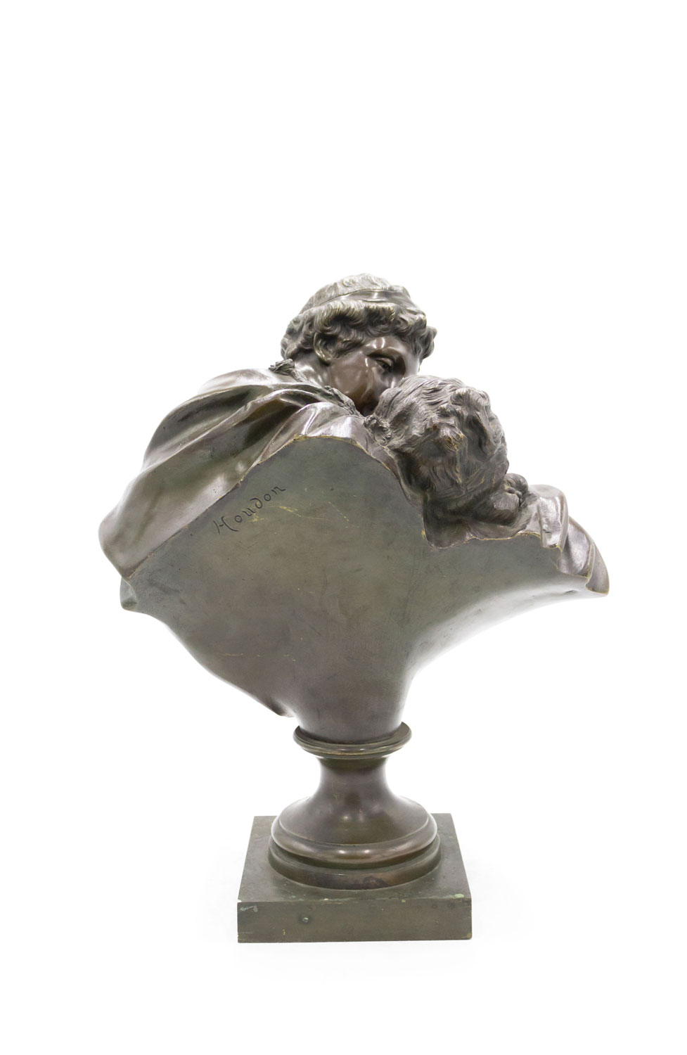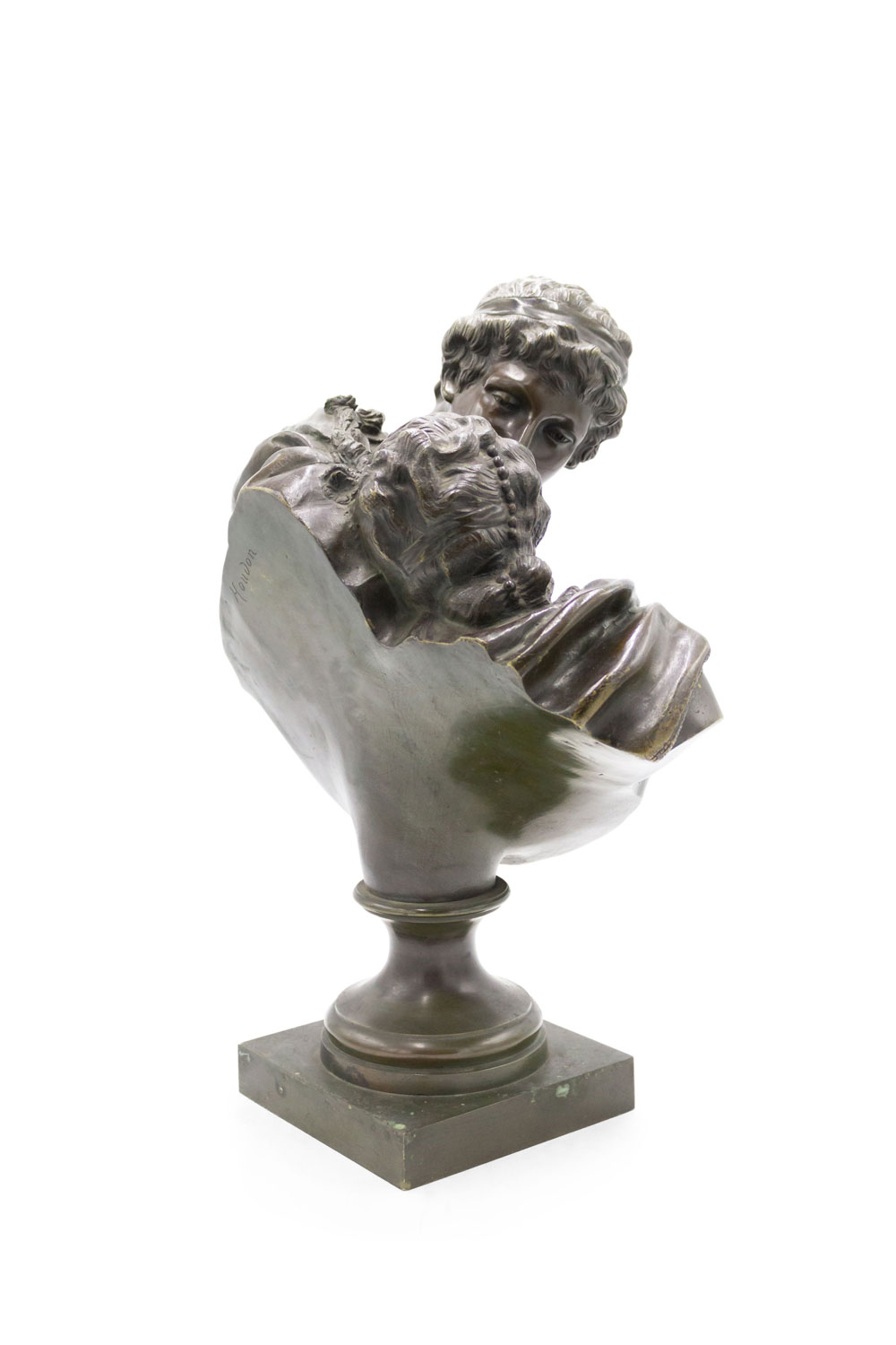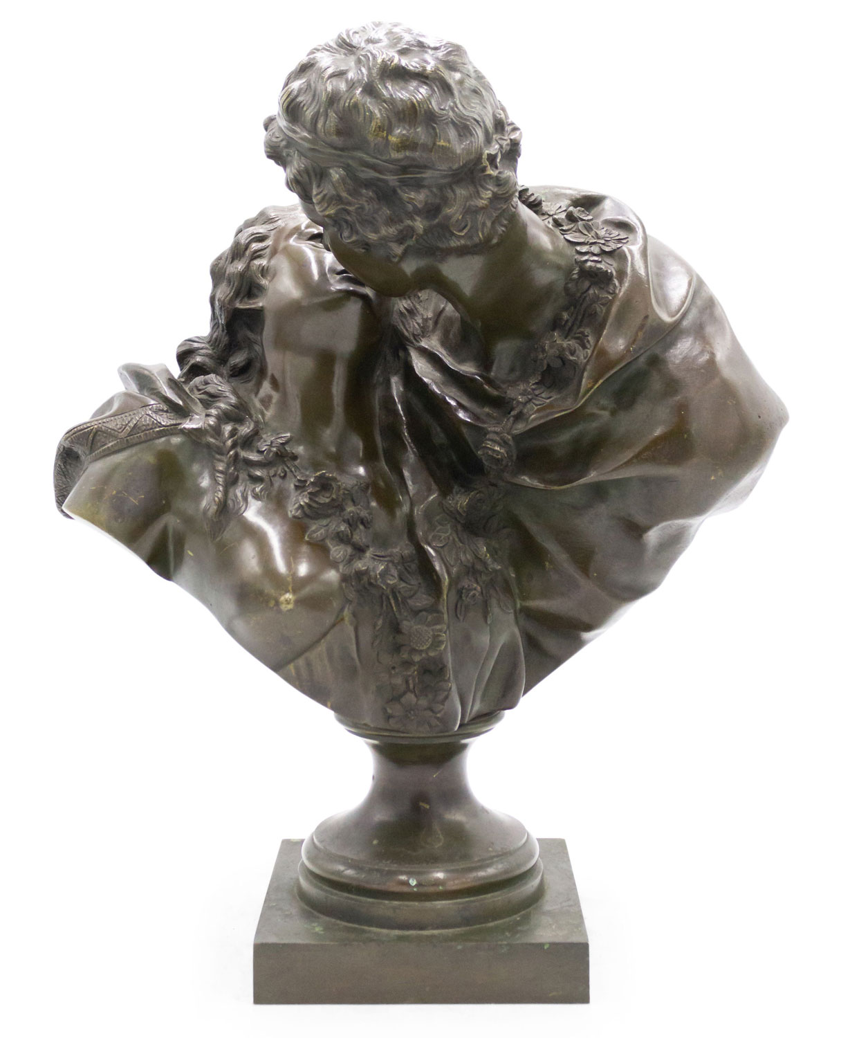 French Louis XVI style (19th Cent) bronze bust of two lovers on bronze square shaped base (signed HOUDON).