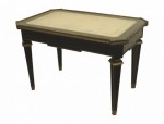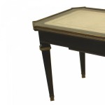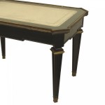 Style: Mid-Century Materials & Techniques: Glass, wood, bronze, ebony, leather, ebonized, stamped Category: Tables