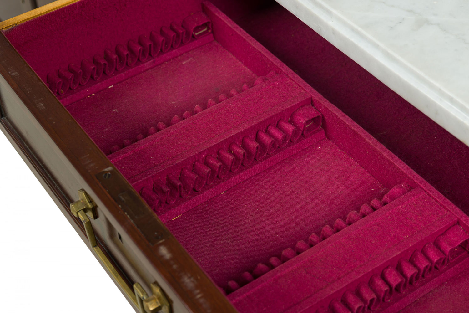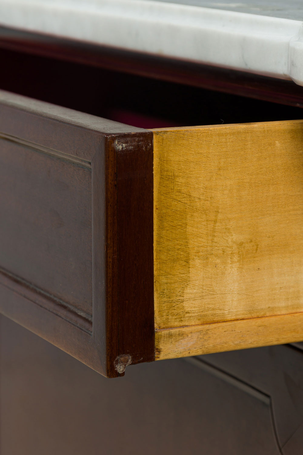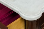 Style: Mid-Century Materials & Techniques: Mahogany, marble, wood Category: Bedroom, Dining Room Good; Wear consistent with age and use