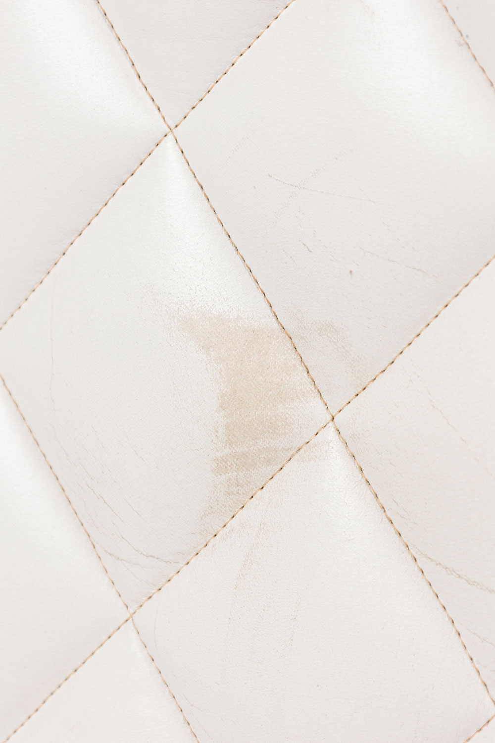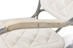 French Mid-Century rocking armchair with an ornate polished nickel scroll design frame with quilted white leather upholstered seat and back. (MAISON JANSEN)(Available in black leather: REG5217A)