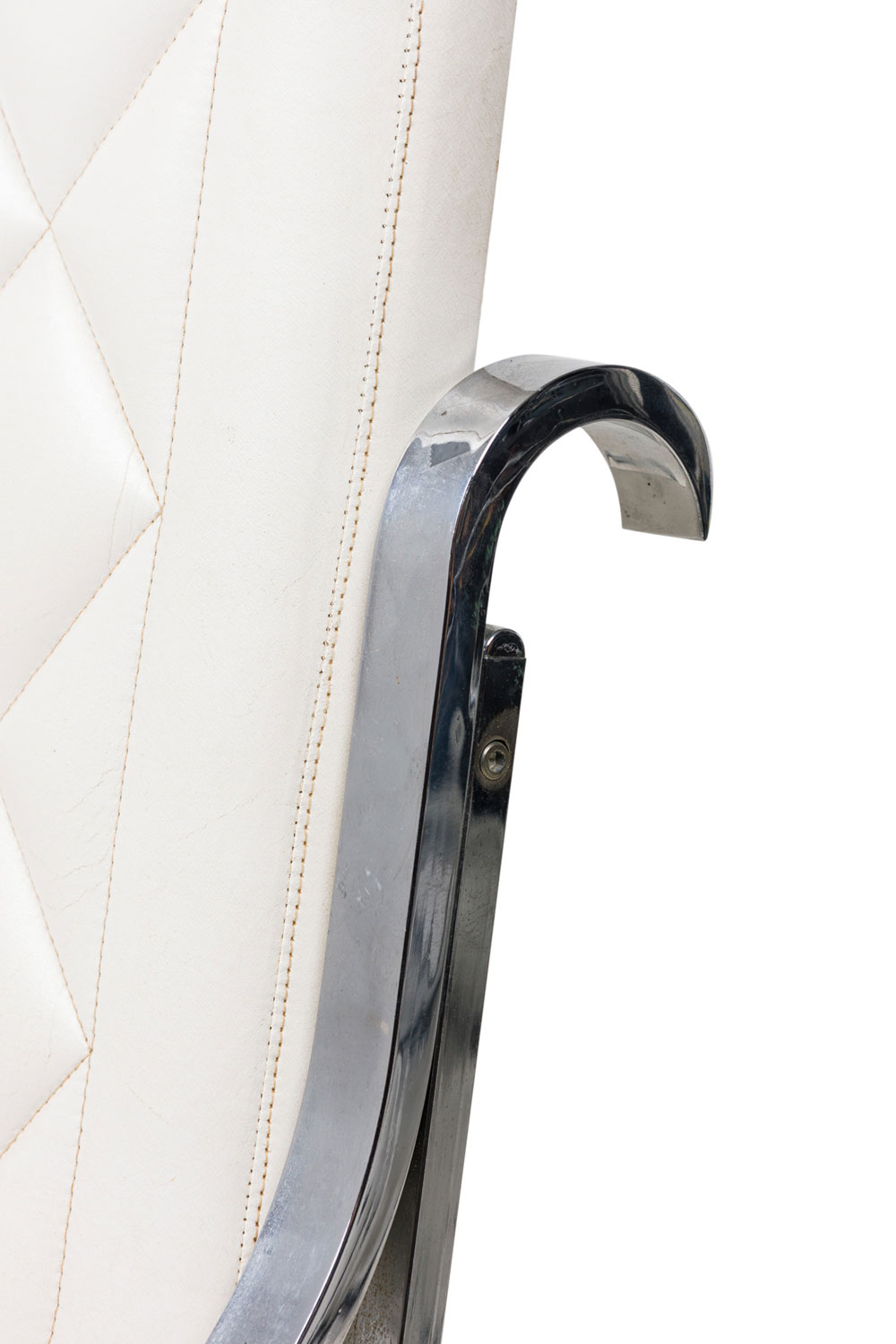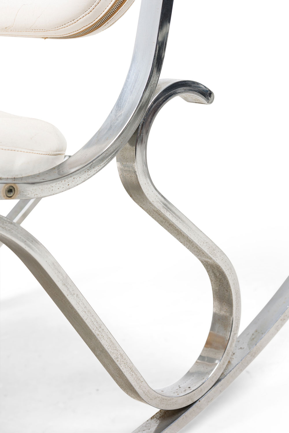 Maison Jansen Mid-Century French Polished Nickel and White Leather Rocking Armchair
