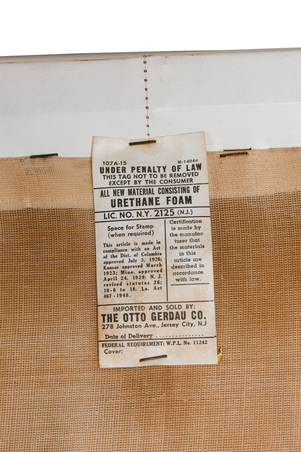 Style: Mid-Century Materials & Techniques: Leather, metal, nickel, upholstered Category: Seating Condition: Wear to upholstery, minor frame corrosion Good; Wear consistent with age and use