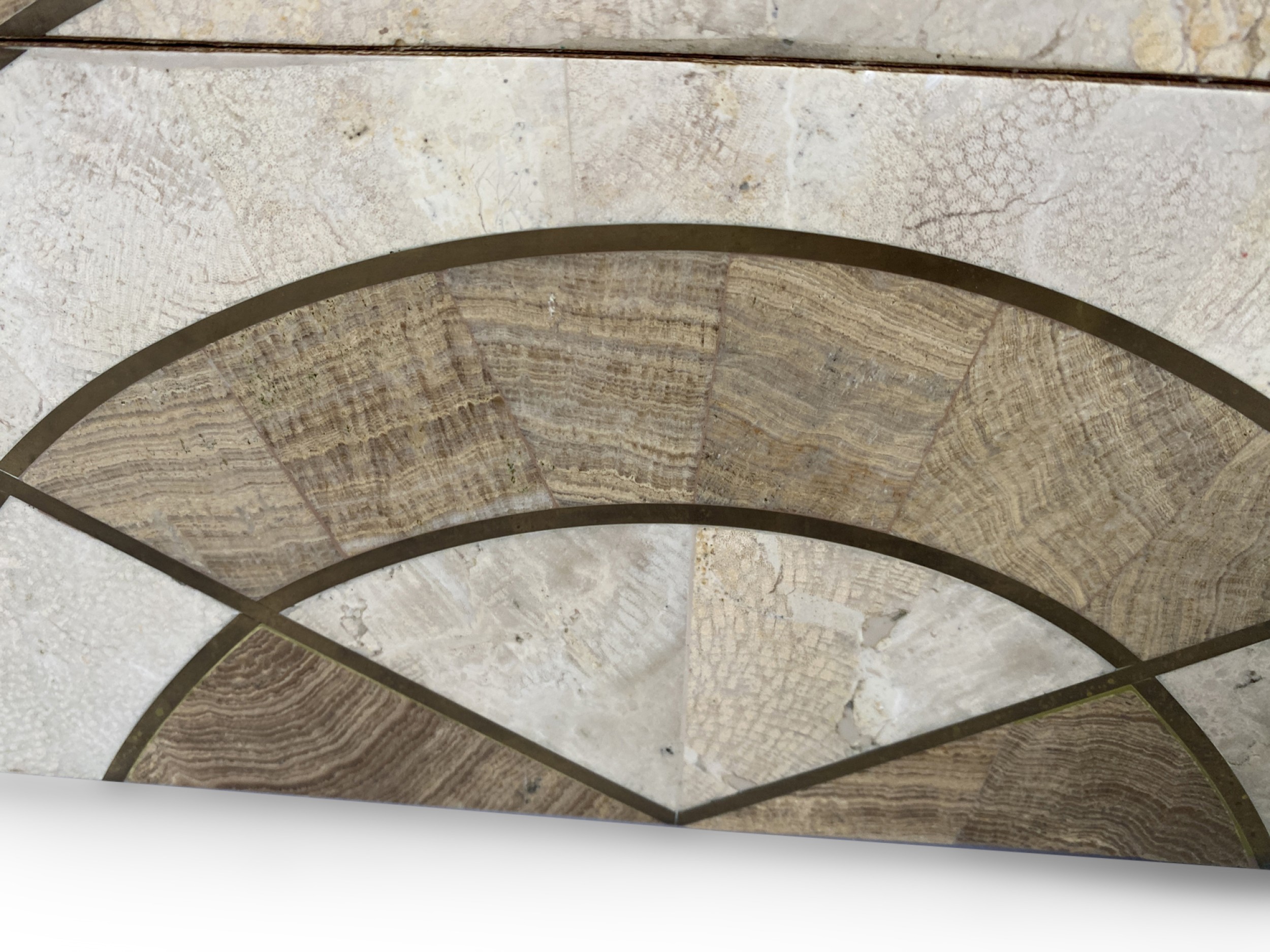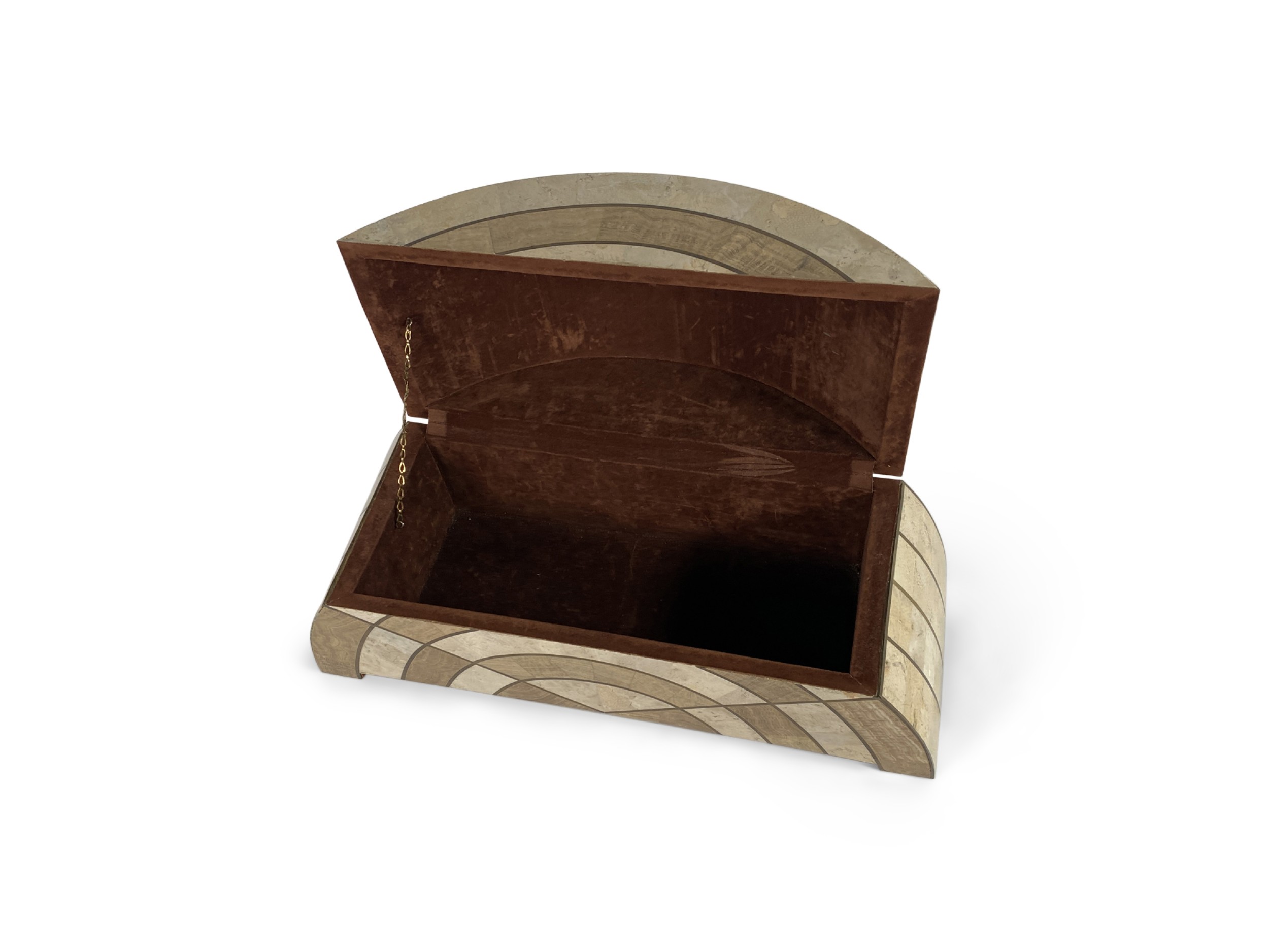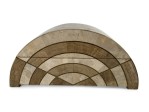 American Mid-Century semi-circle shape bone box with tan and brown pattern (MAITLAND SMITH).