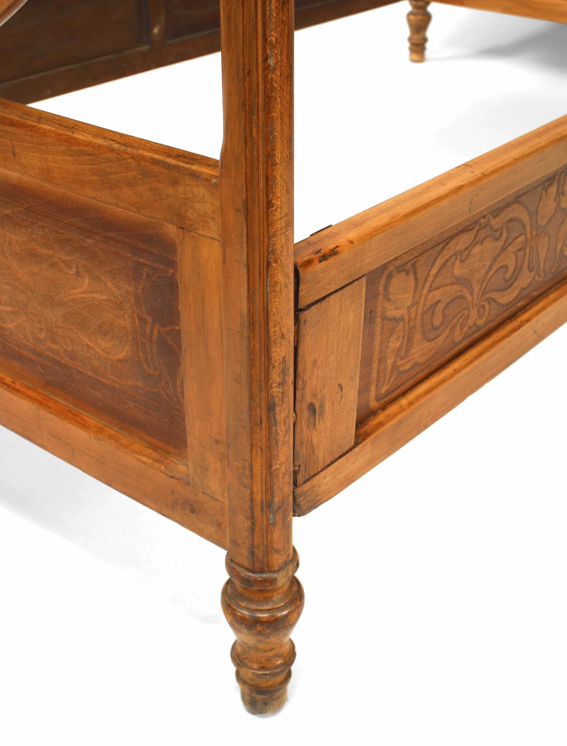 Bentwood (19/20th Century) maple stained twin size bed with double scroll center design (includes: headboard, footboard, rails).(paper label: JACOB JOSEP KOHN, WEIN). (Internal dimensions are 41.5" x 75.5").