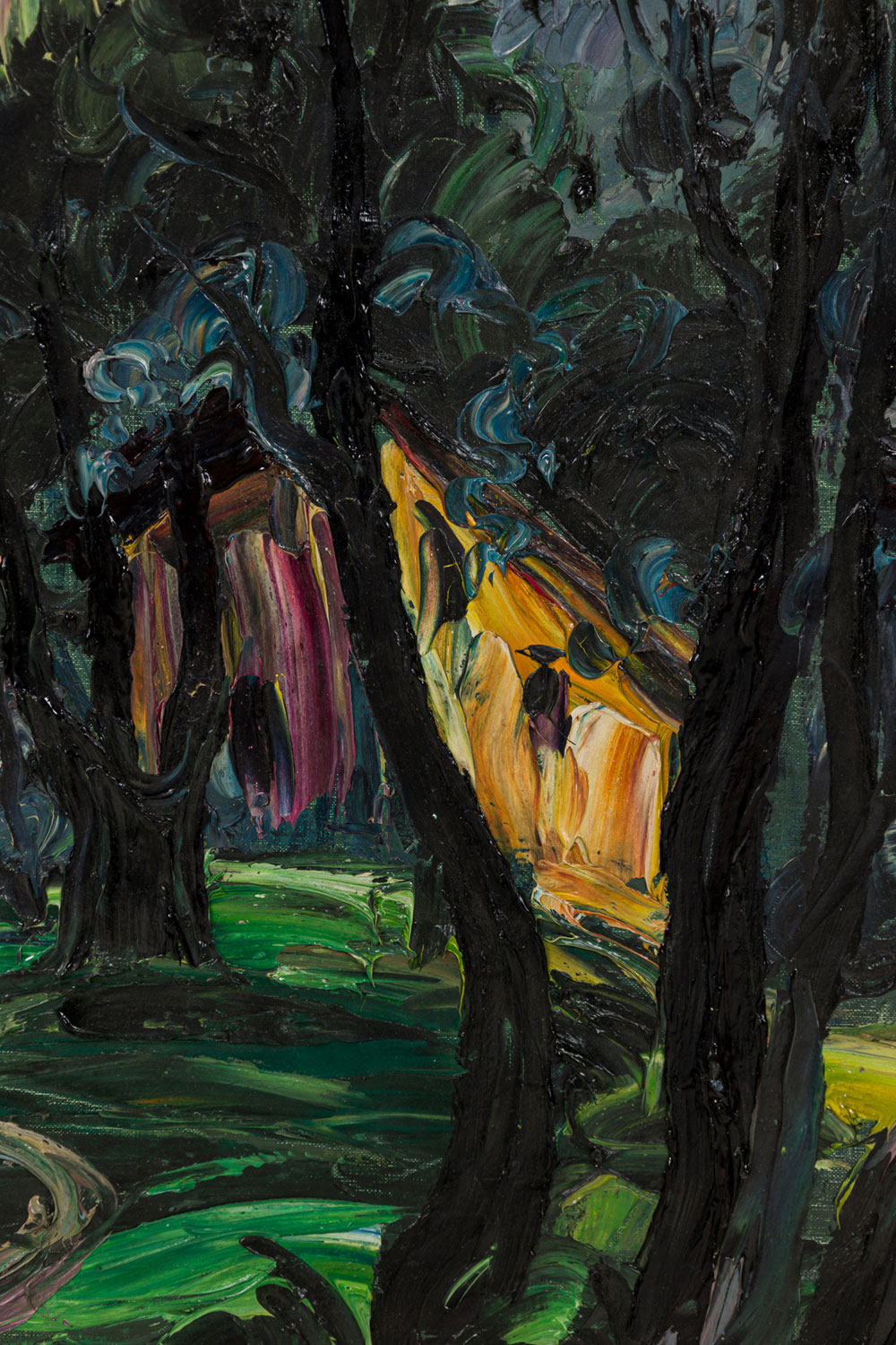 Maurice Wague-Weyman French Hungarian Oil on Canvas Landscape Painting, Titled: "The Cabin in the Woods"