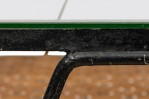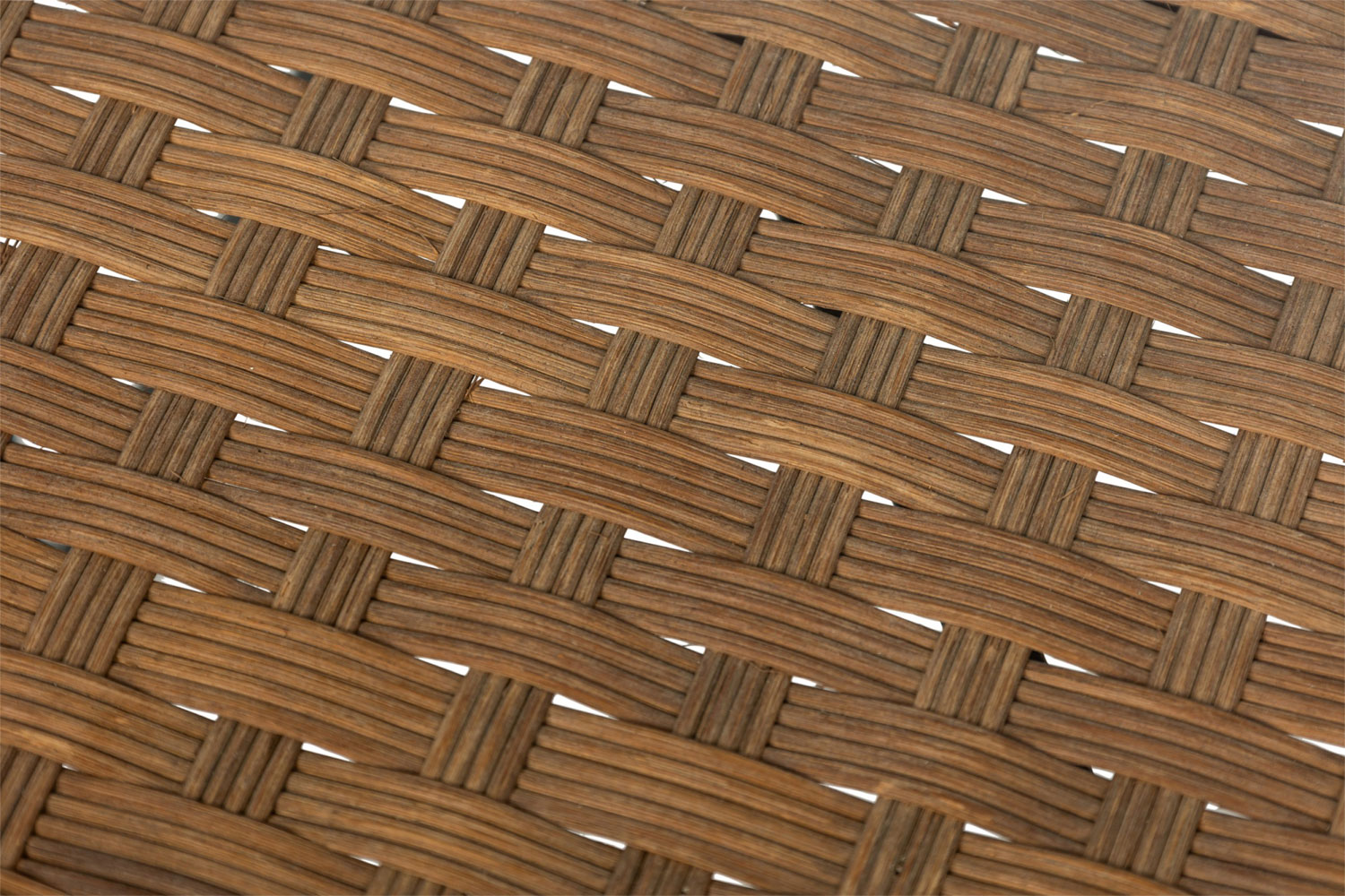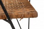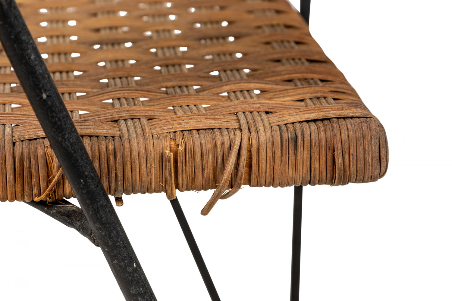 Style: Mid-Century Materials & Techniques: Glass, metal, rattan Category: Tables Condition: Rattan worn; fraying. Some wear to finish.