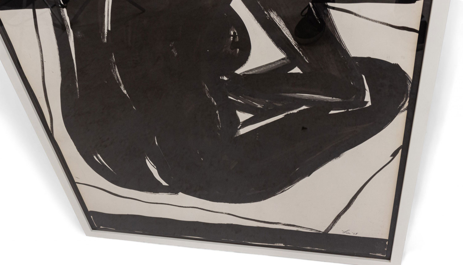 Michael Loew, American 1907-1985, Black Nude, 1968, Signed Lower right, India Ink/Paper, 26" x 20"
