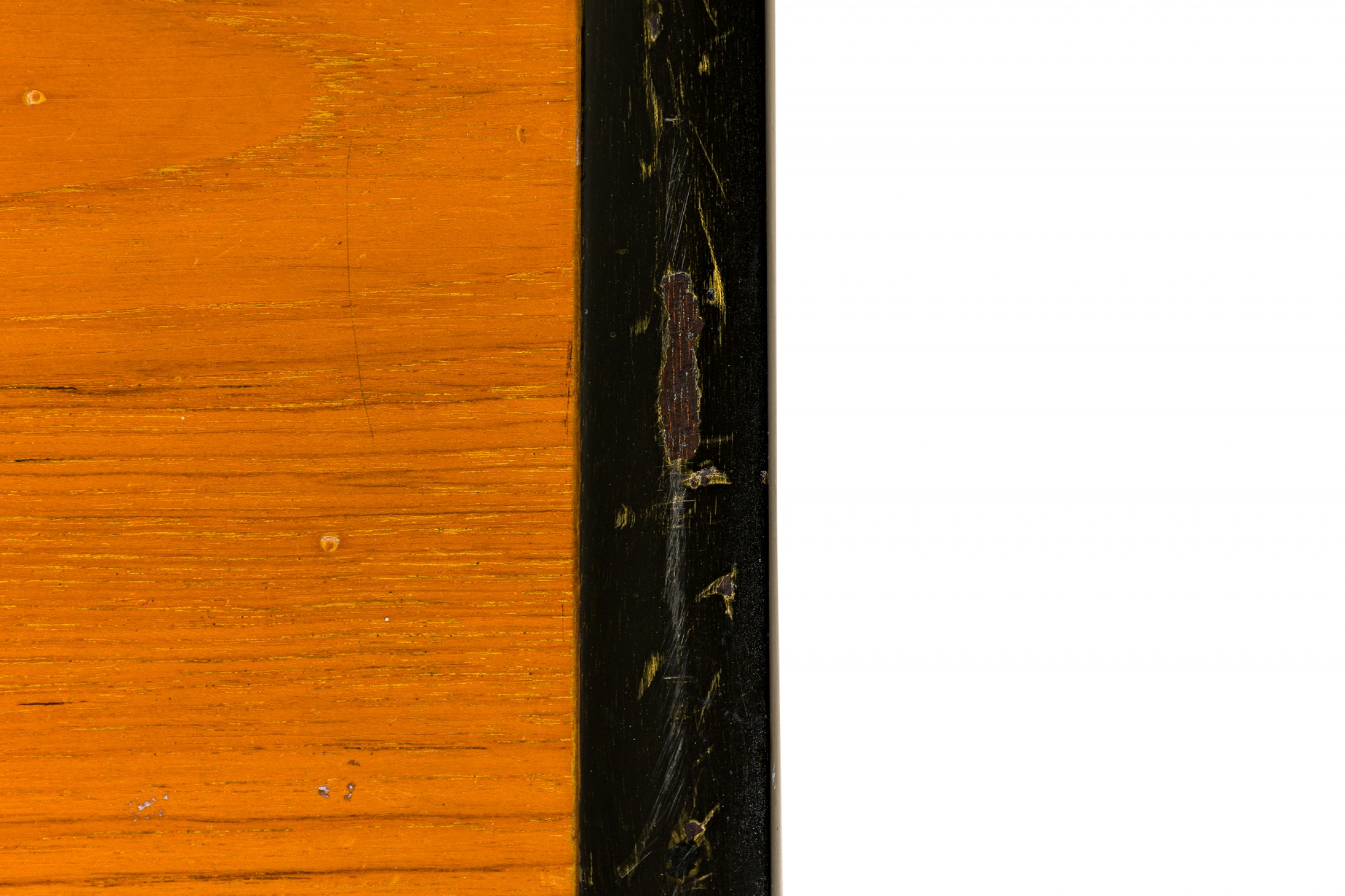 Style: Mid-Century Materials & Techniques: Brass, lacquered, metal, wood Category: Tables Good; Wear consistent with age and use
