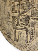 Brutalist Mid-century fiberglass wall hanging / plate with cerused coloring in a concave fiberglass form, modeled after Picasso's "The 3 Musicians" (Signature Unidentified)