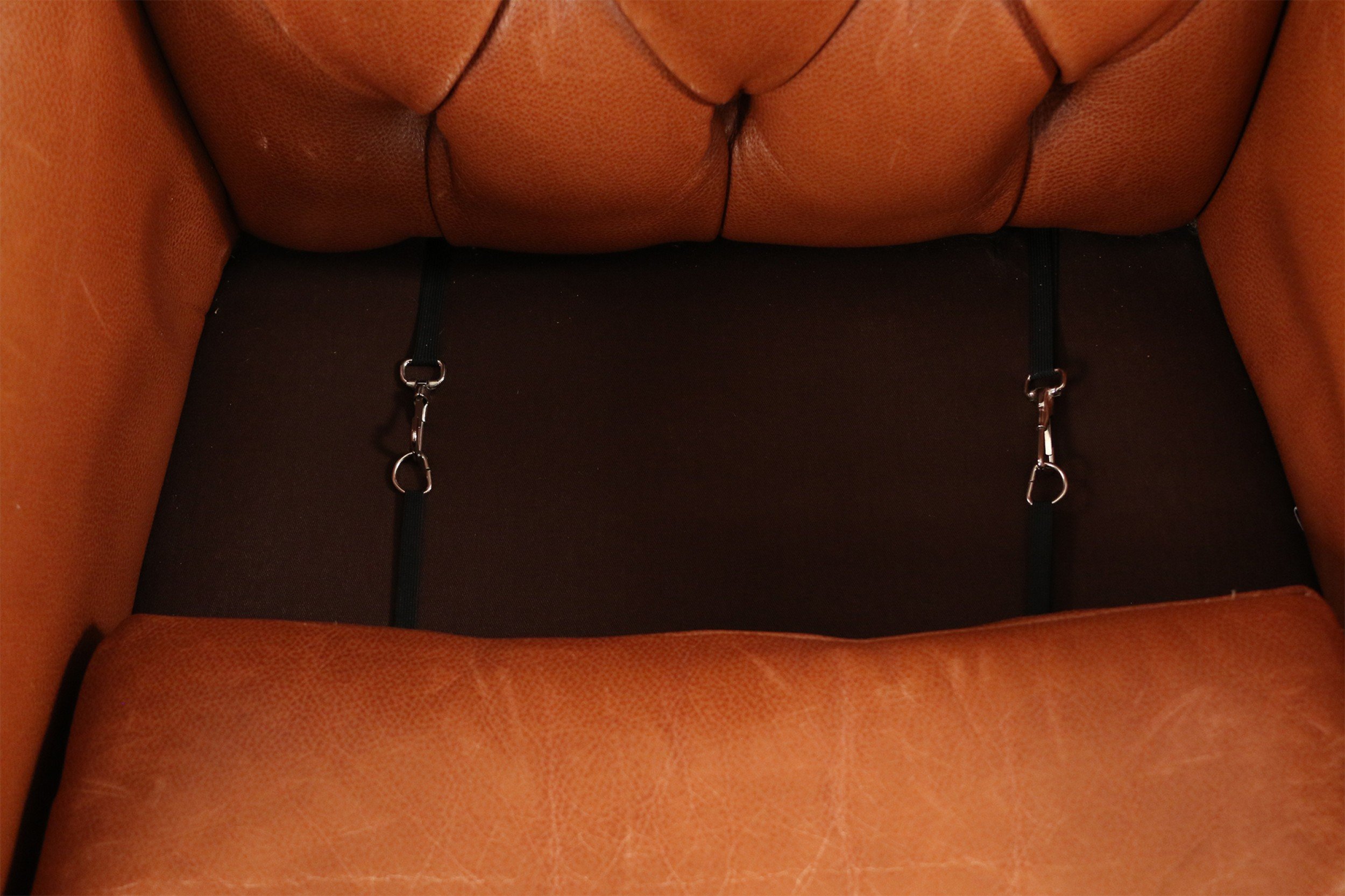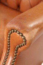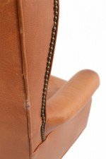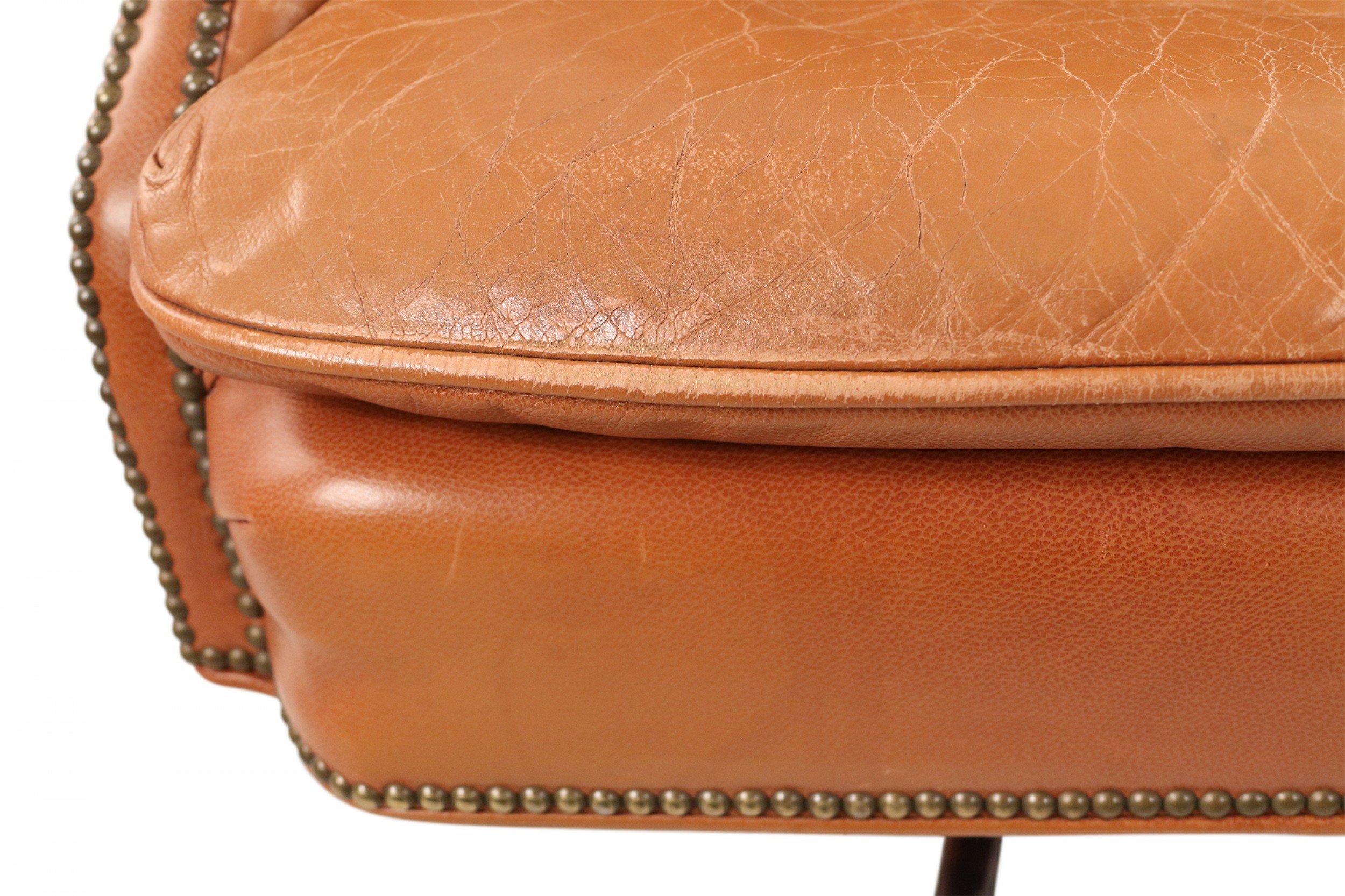 Style: Mid-Century Materials & Techniques: Brass, leather, metal, tufted, wood Category: Seating, Office/Library