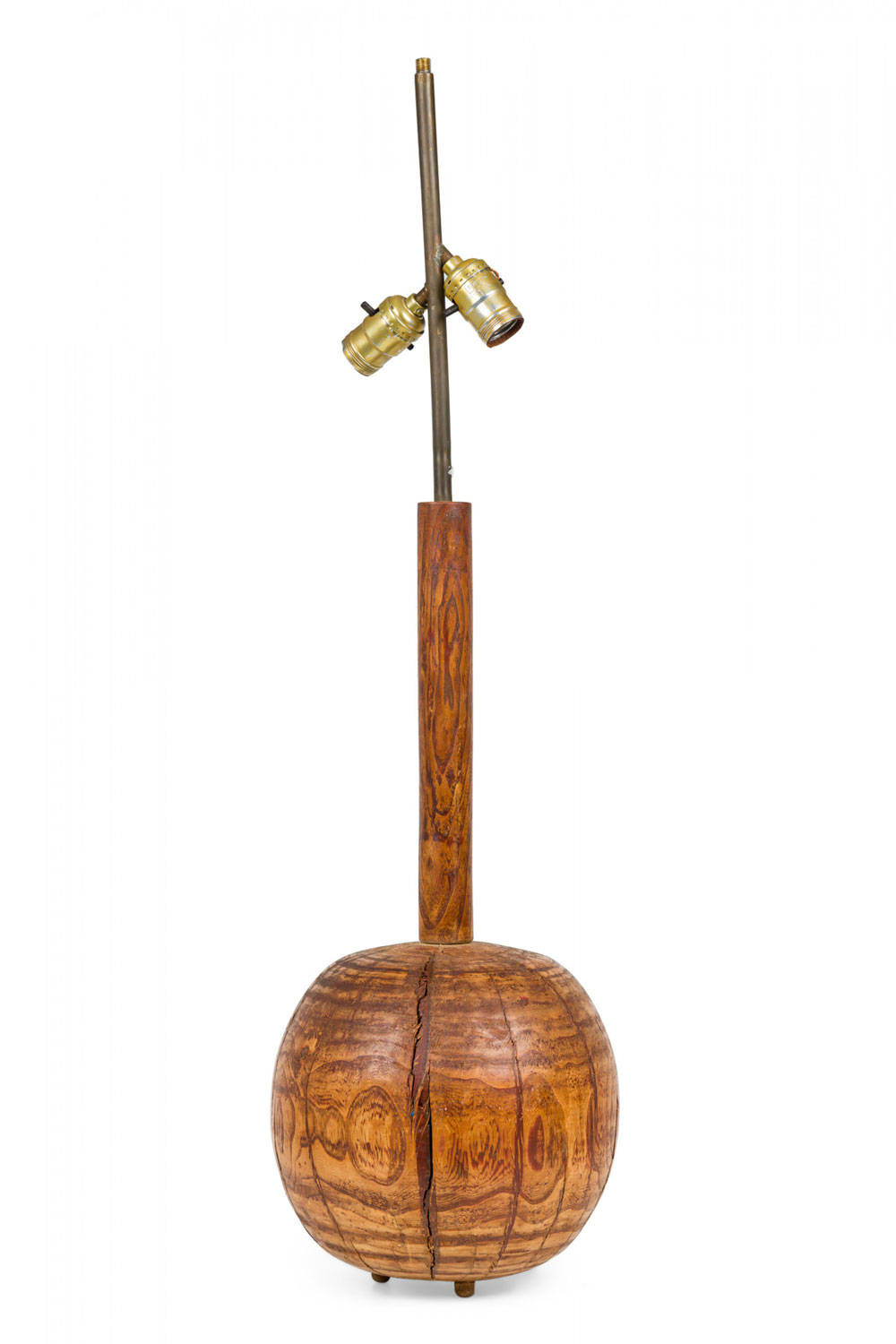 Mid-Century American Carved Palm Wood Sphere Form Table Lamp
