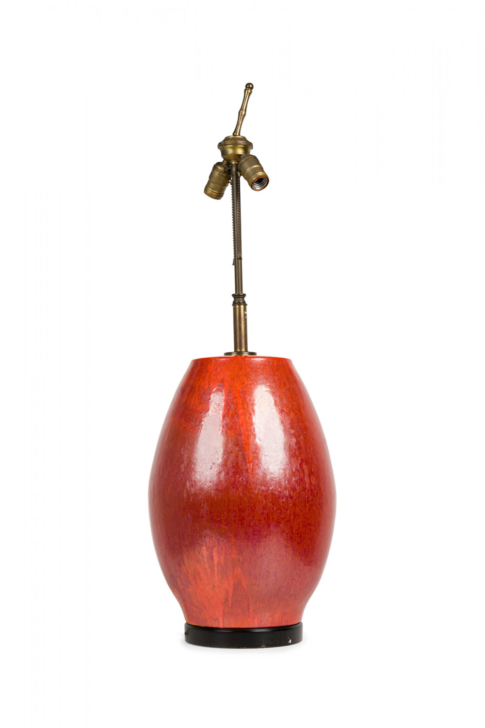 Mid-Century American Ceramic Burnt Orange Glazed Egg Form Table Lamp