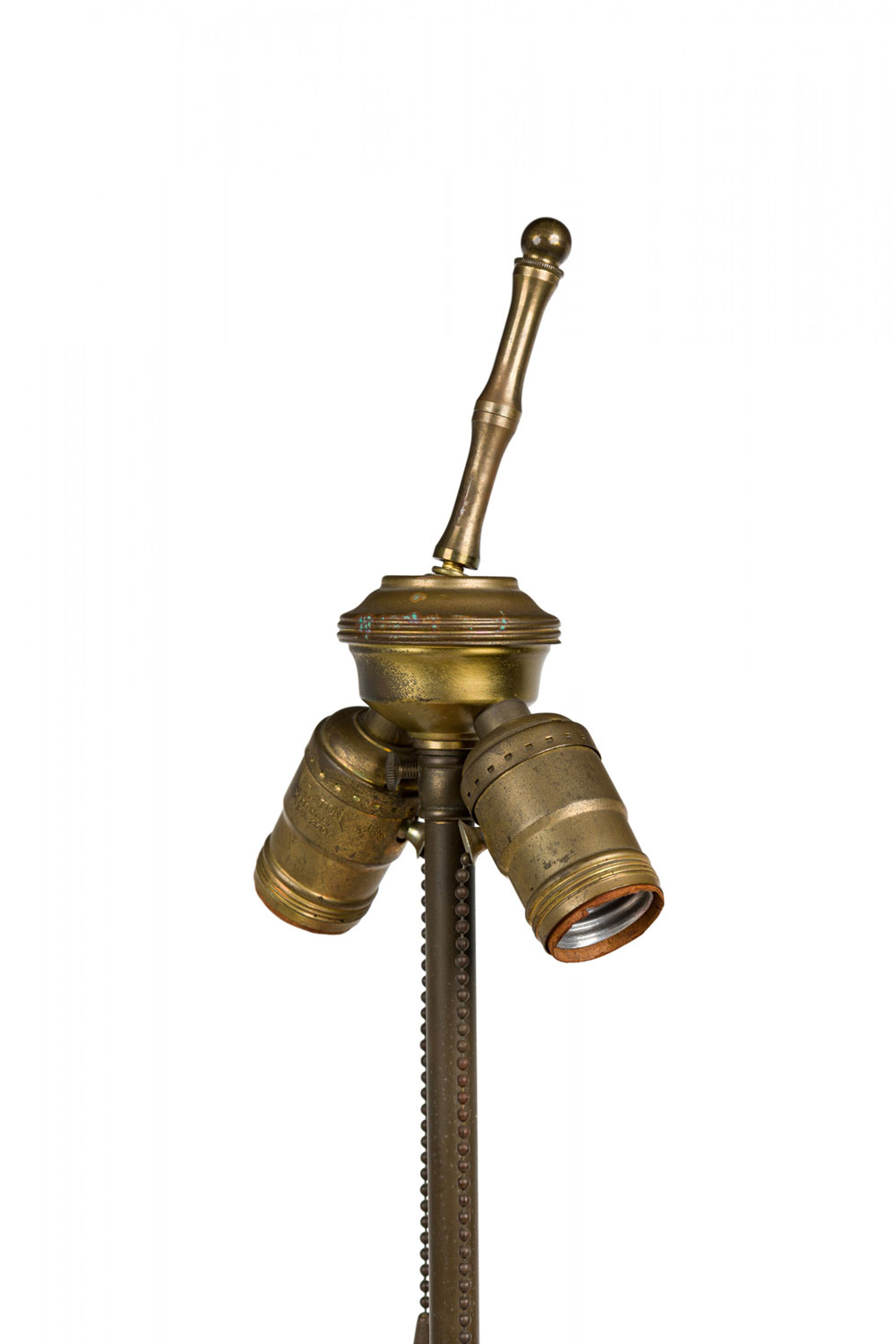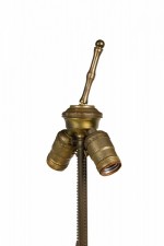 Style: Mid-Century Materials & Techniques: Brass, ceramic, enamel, metal, painted, wood Category: Lighting Condition: Finial bent, some wear to finish on brass, bottom felt worn. Electrics working. Ships without shade. Good; Wear consistent with age and use