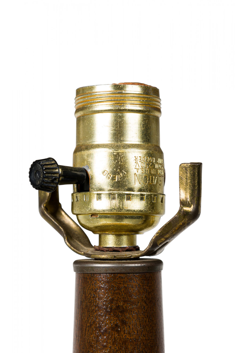 Style: Mid-Century Materials & Techniques: Brass, ceramic, metal, wood Category: Lighting Condition: Faulty wiring - intermittent connection, needs new electrics. Felt worn on bottom. Ships without shade. Good; Wear consistent with age and use