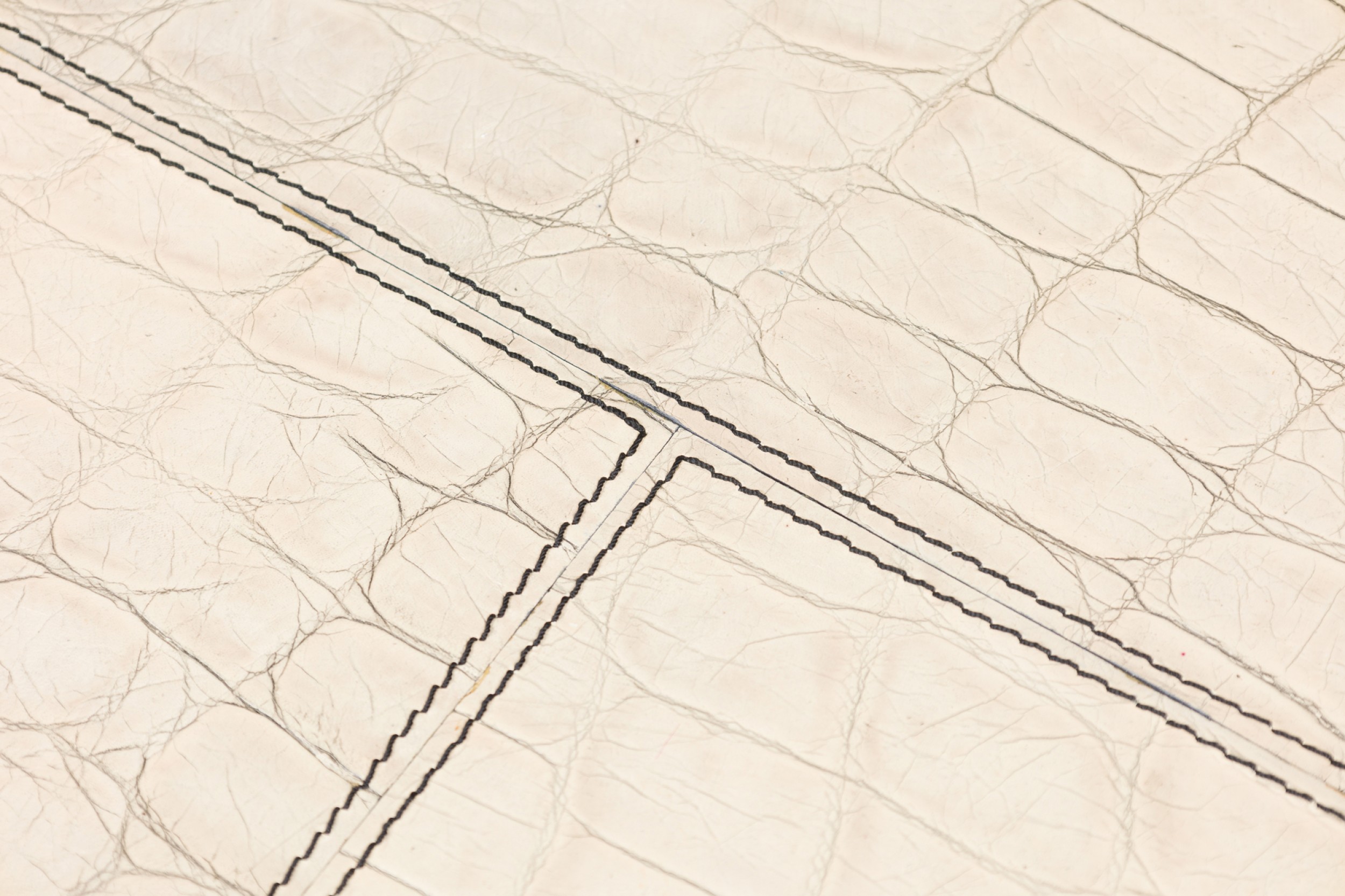 Mid-Century American Embossed Beige Faux Reptile Leather Desk