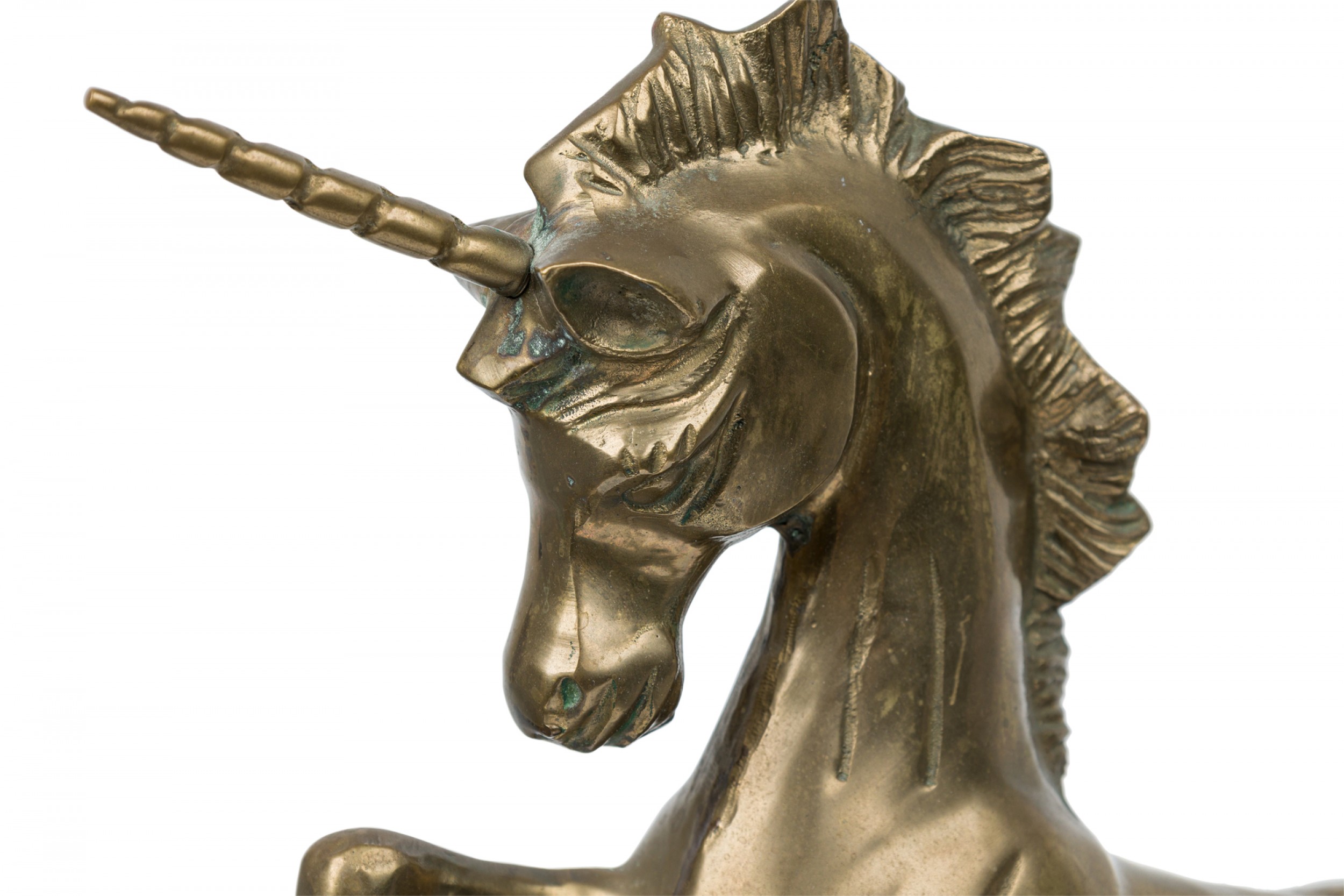 Mid-Century American Modern Brass Unicorn Sculpture on Square Base