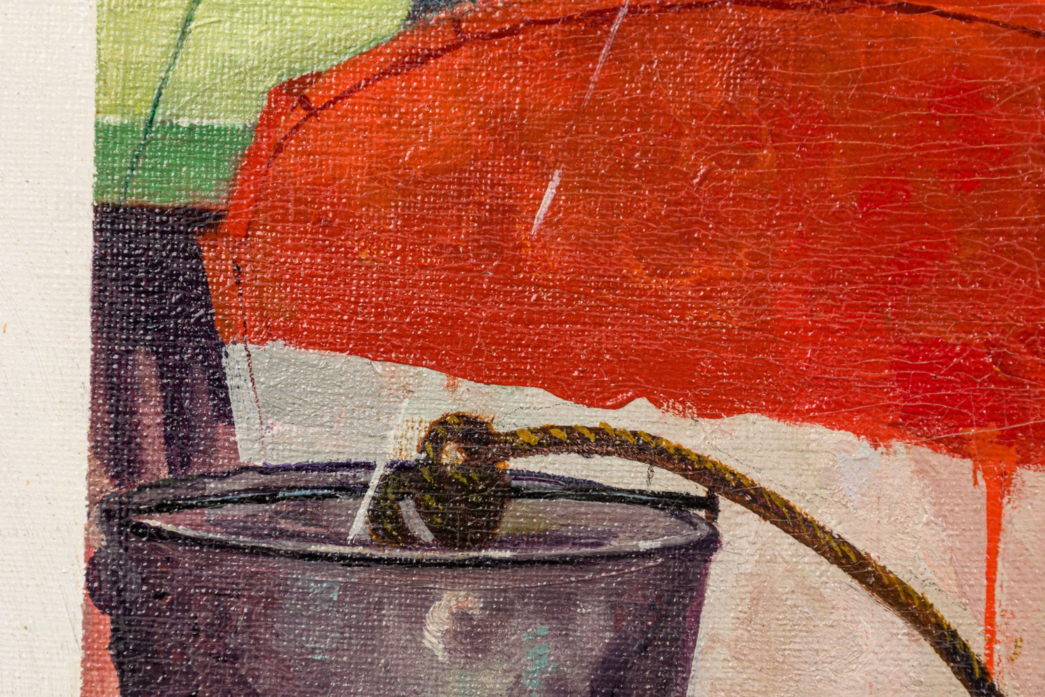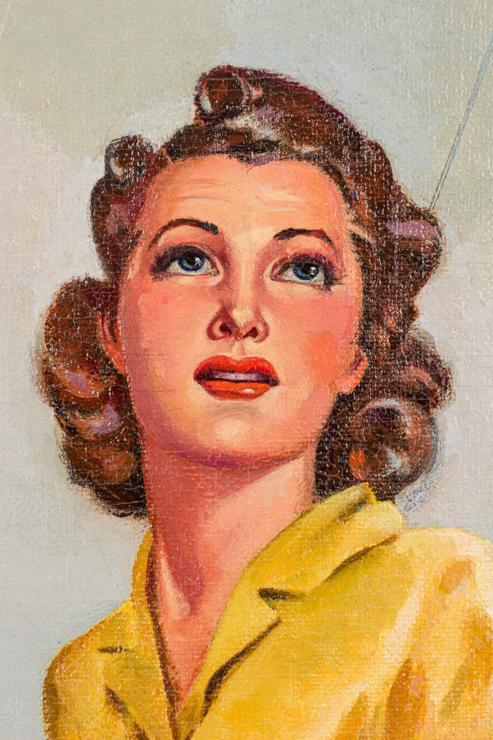 Mid-Century American Oil Painting Portrait of a Woman Painting a Boat