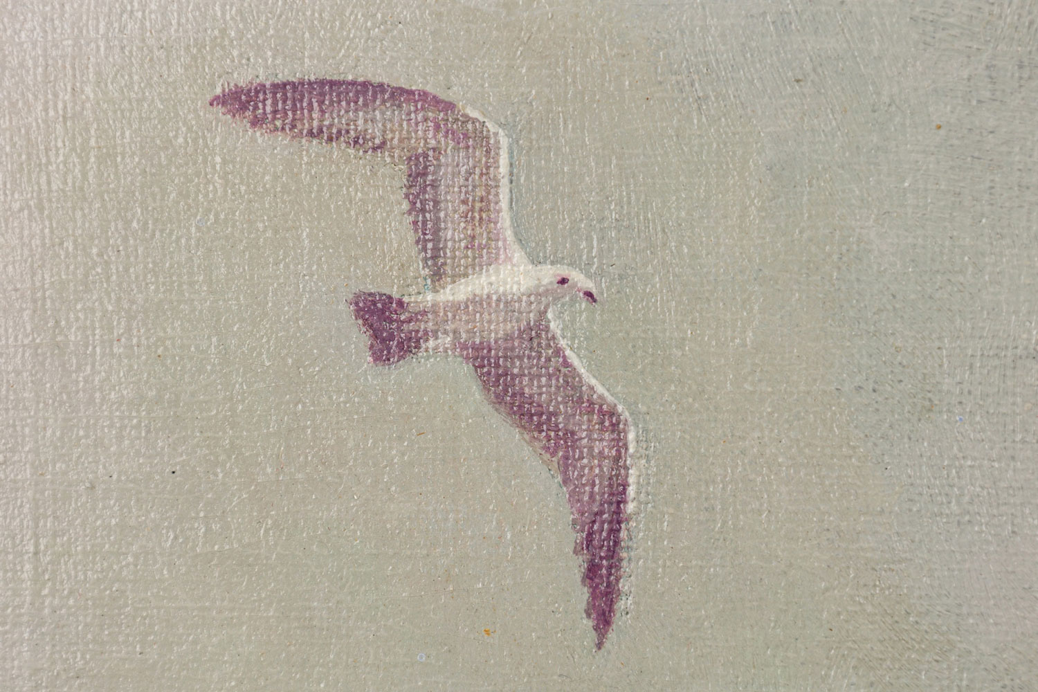 Style: Mid-Century Materials & Techniques: Canvas, metal, painted Category: Cleared Art Condition: Slight wear. Good; Wear consistent with age and use