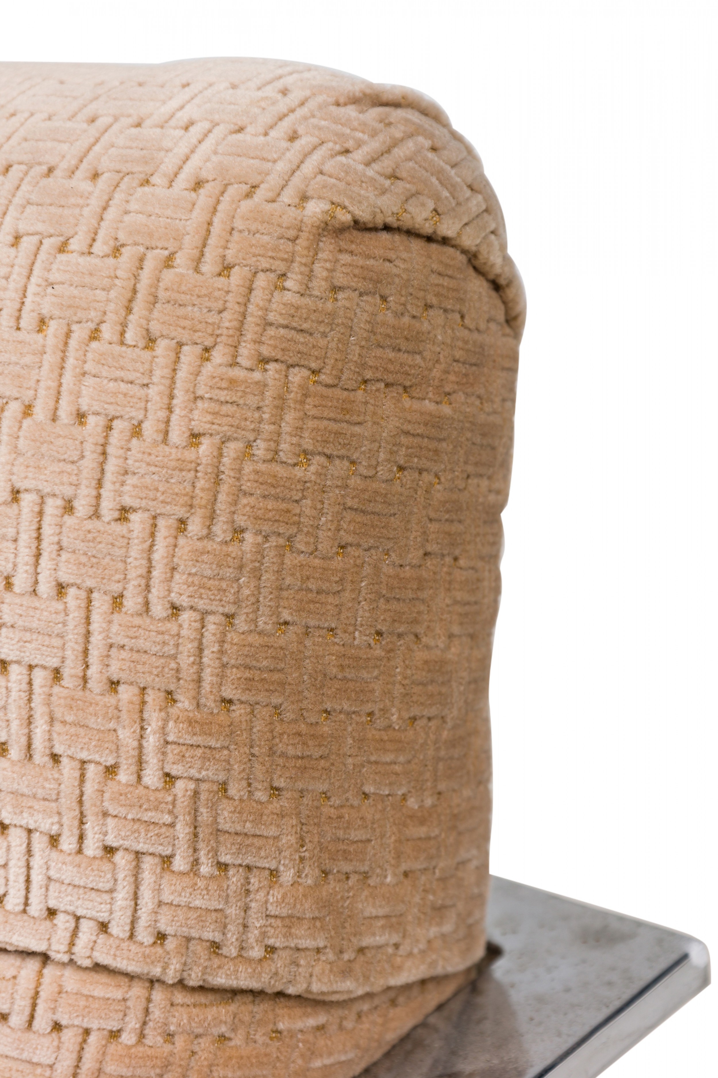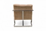 Mid-Century American Polished Silver Metal and Beige Upholstered Armchair, manner of Milo Baughman