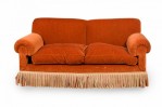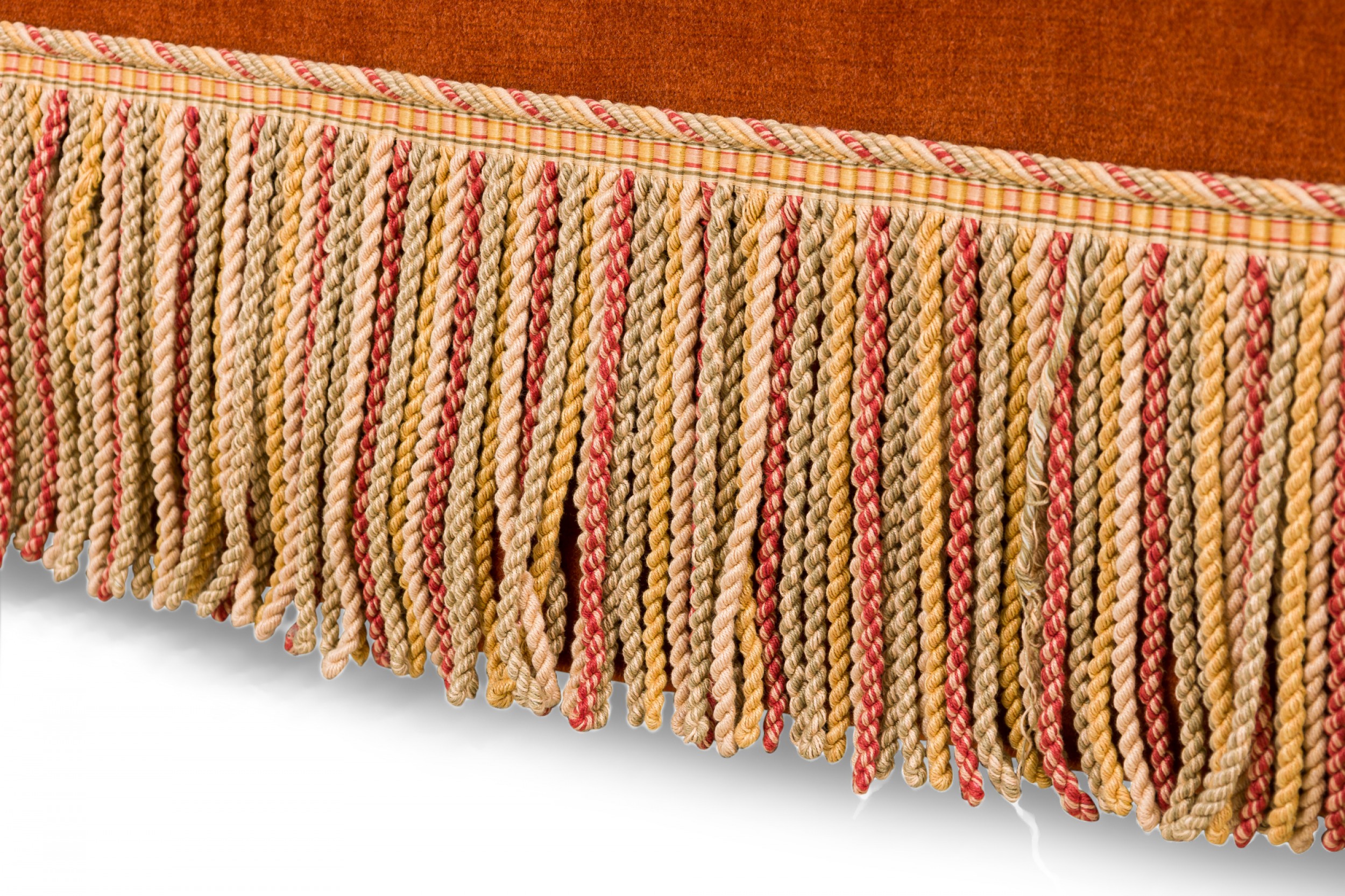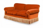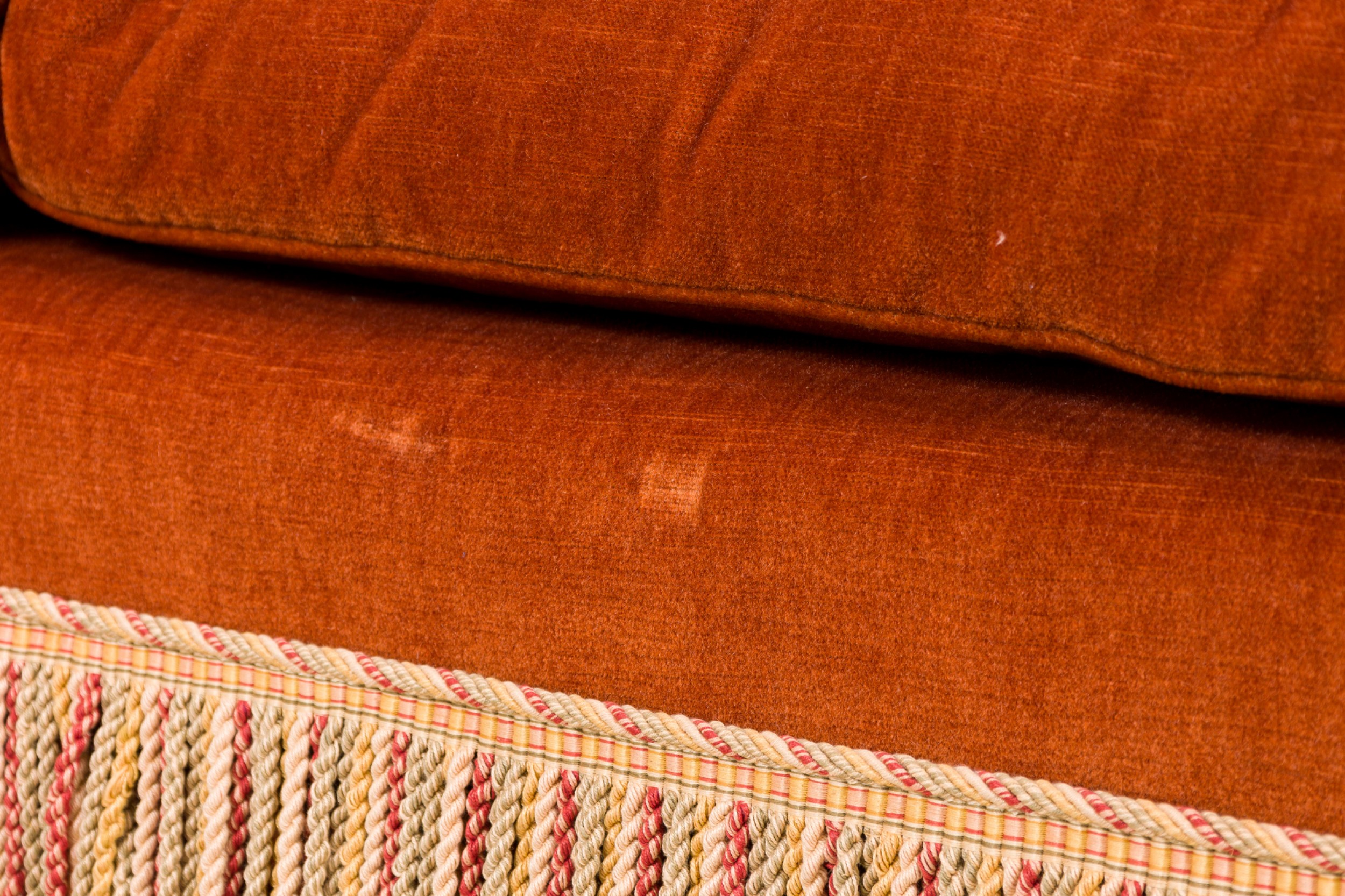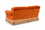 Mid-Century American Rust Velvet Upholstered Two Seater Fringed Sofa