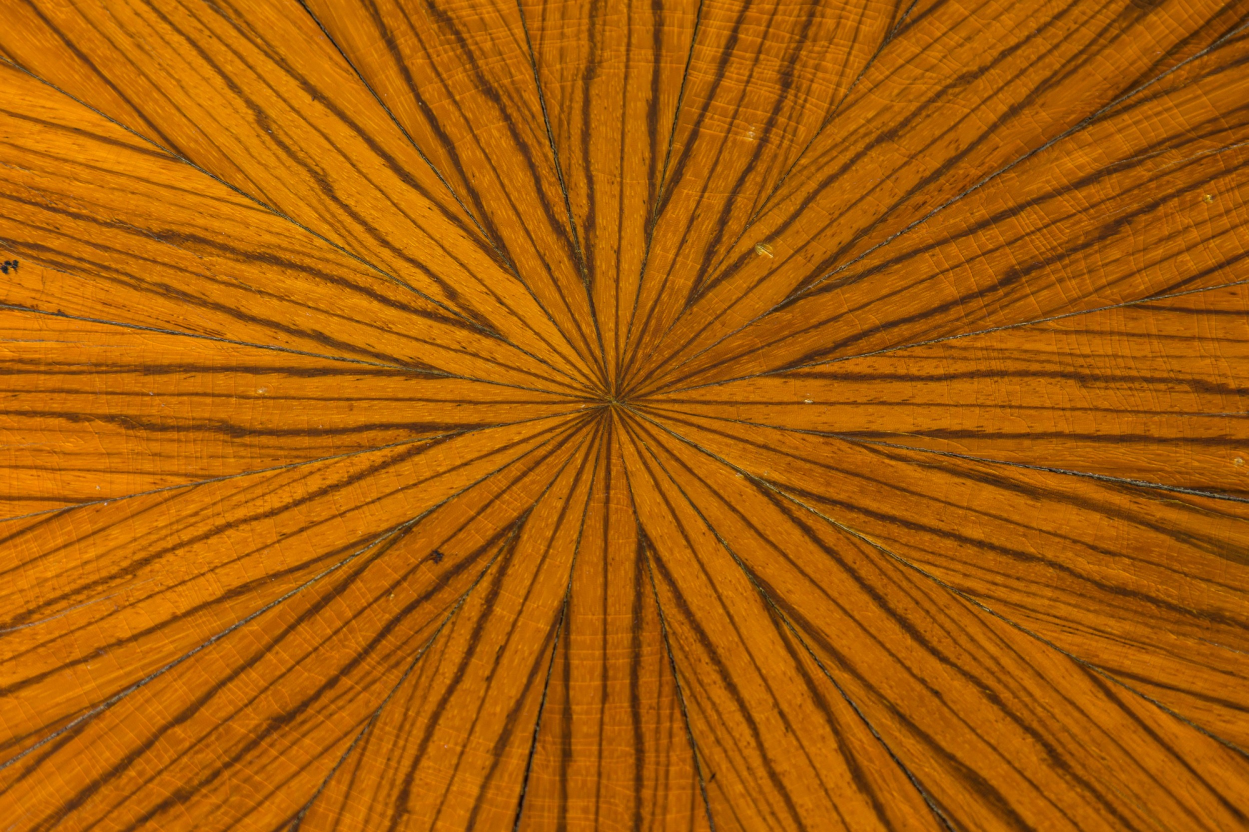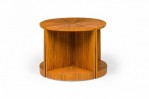 Mid-Century American Zebra Wood Occasional Table and 4 Wedge Stools, Attributed to Vladimir Kagan
