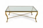 Mid-Century Bronze and Clear Glass Hoof Foot Coffee / Cocktail Table