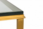 Style: Mid-Century Materials & Techniques: Bronze, glass, metal Category: Tables Condition: Chip to one corner of the glass top Good; Wear consistent with age and use