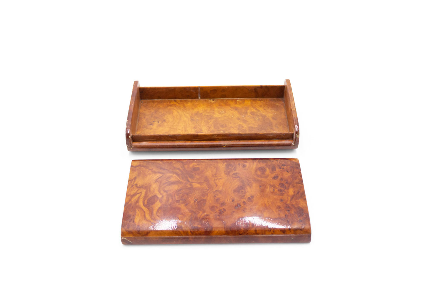 Style: Mid-Century Materials & Techniques: Walnut, burl, burl Category: Accessories/Décor/Bric-a-Brac Condition: Vintage condition