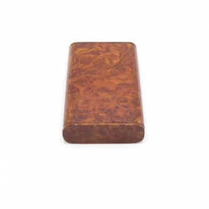 Mid-Century rectangular burl walnut low box with rounded edges.