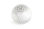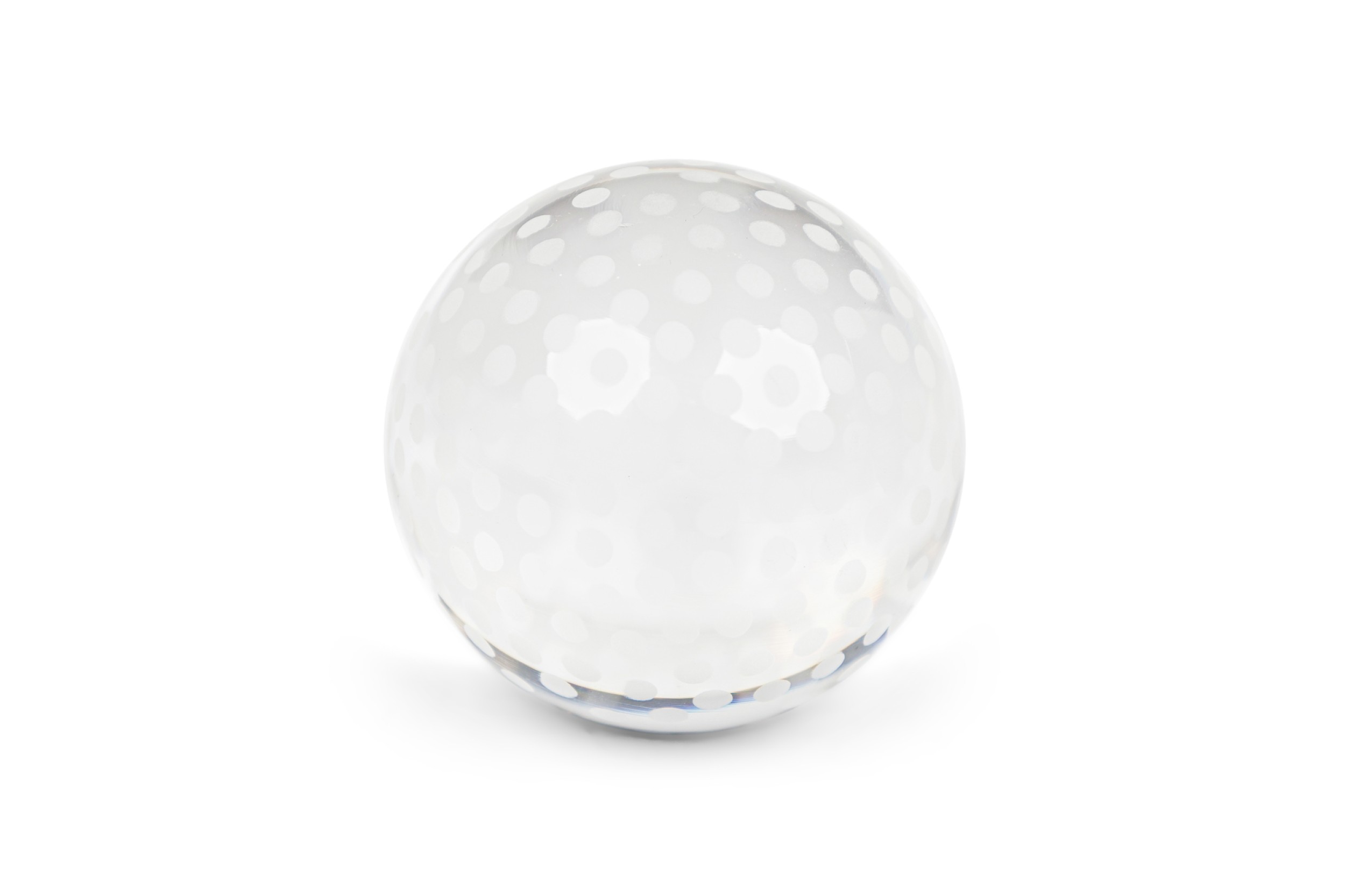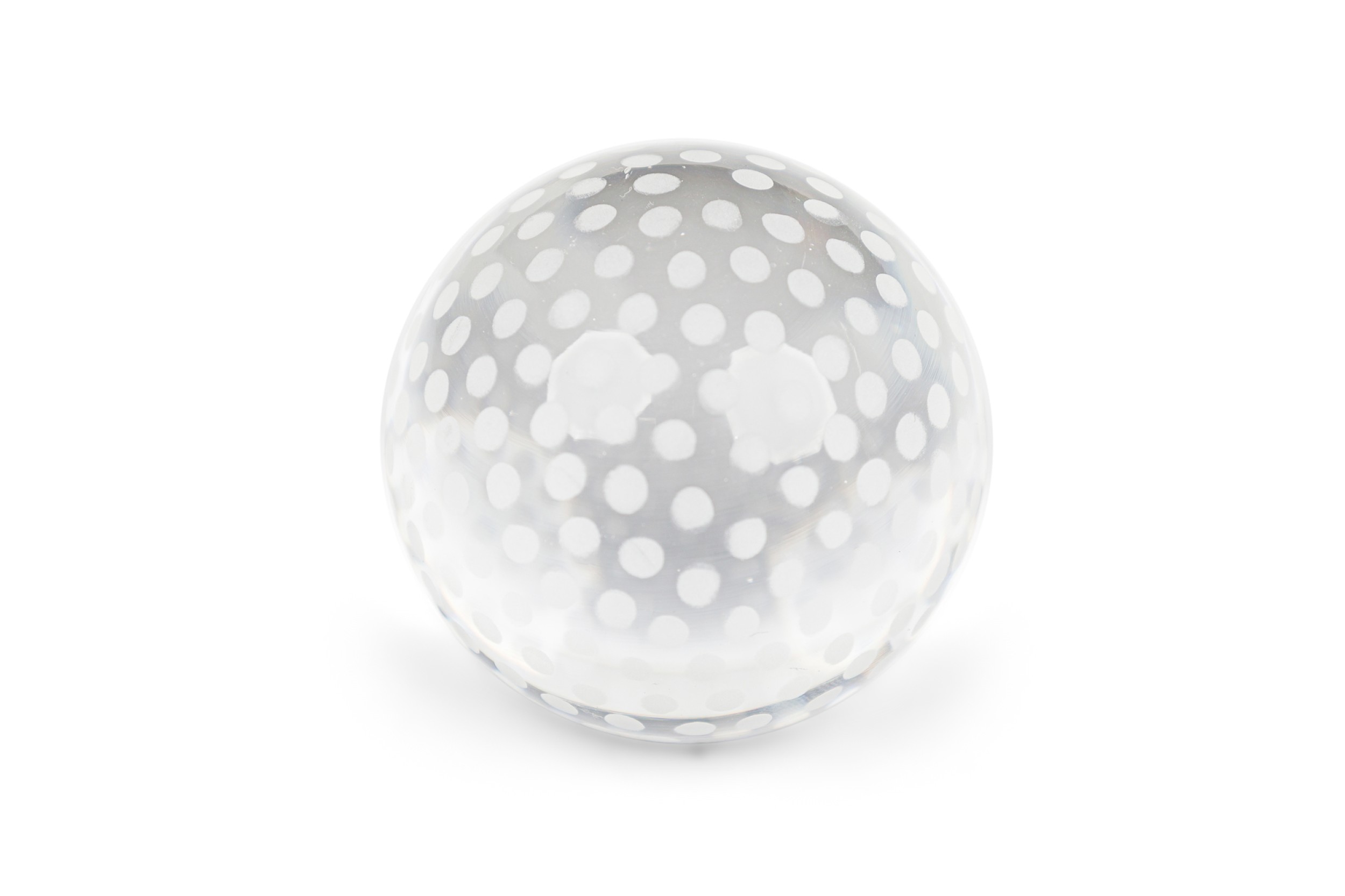 Mid-Century Continental frosted round crystal sphere paperweight with an interior bubble design