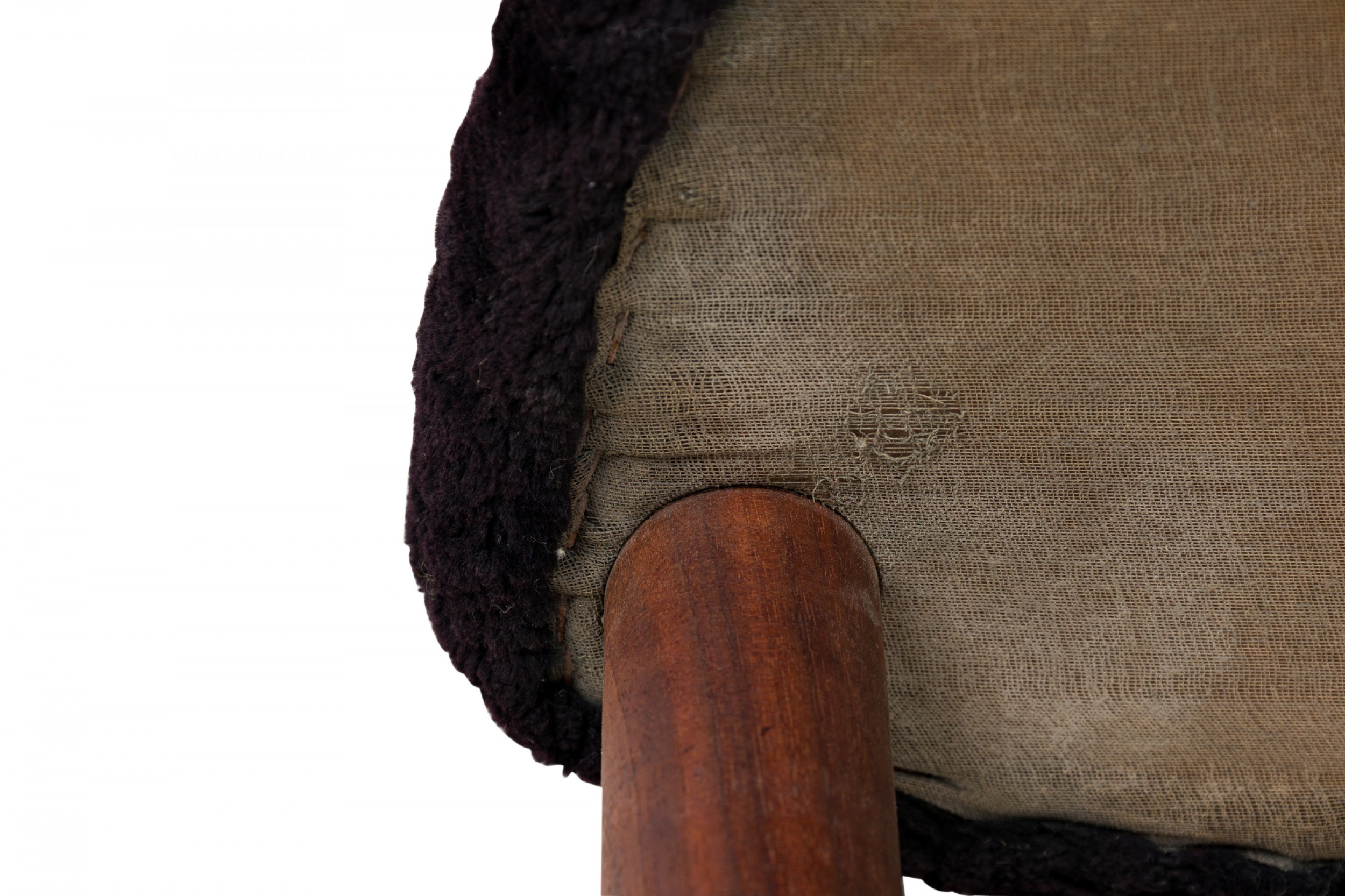 Style: Mid-Century Materials & Techniques: Brass, fabric, metal, upholstered, velour, wood Category: Seating Good; Wear consistent with age and use
