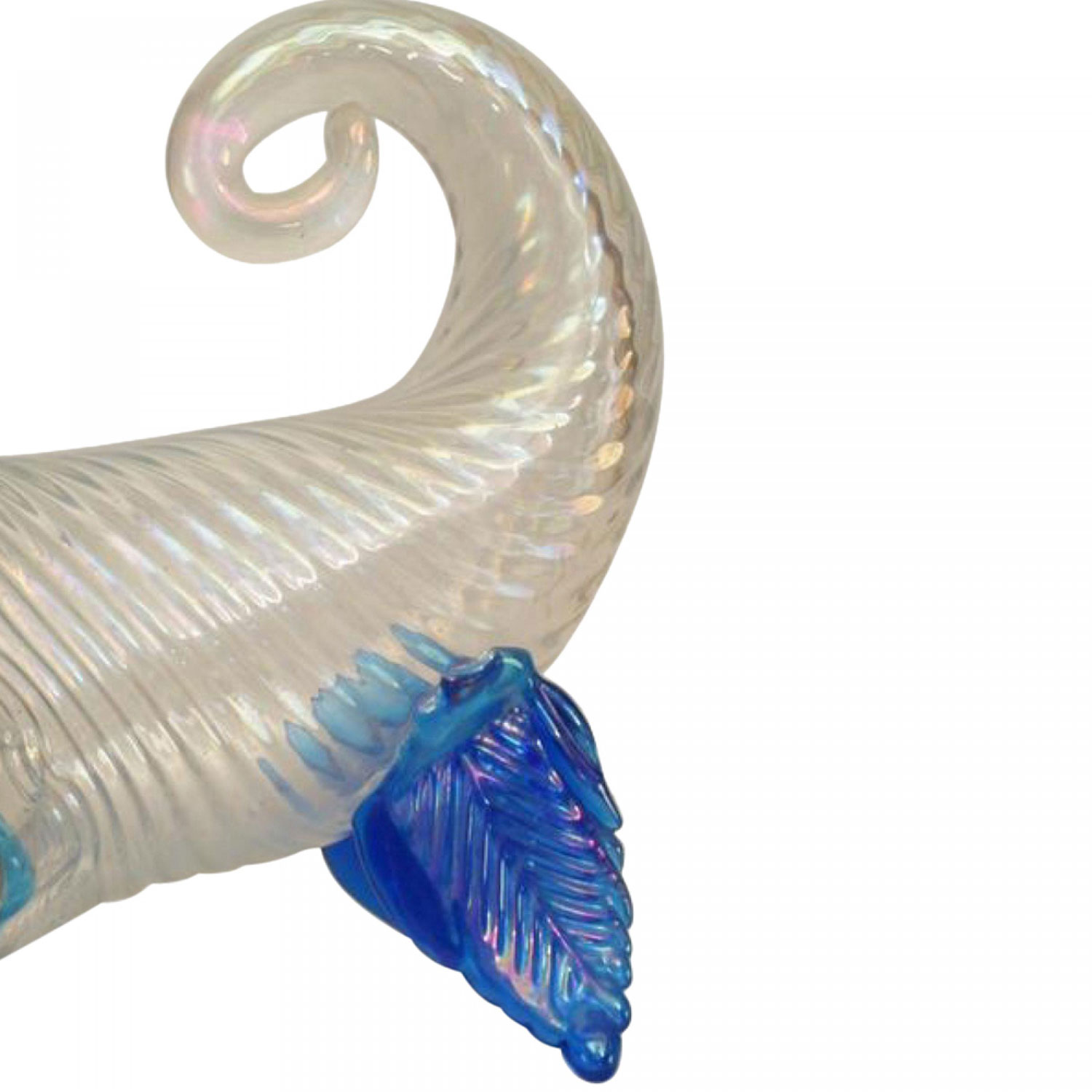 Italian 1930/40s Venetian Murano clear swirl design glass cornucopia ornament with multicolored glass fruit and vegetables with 2 blue leaves (as is-repair)