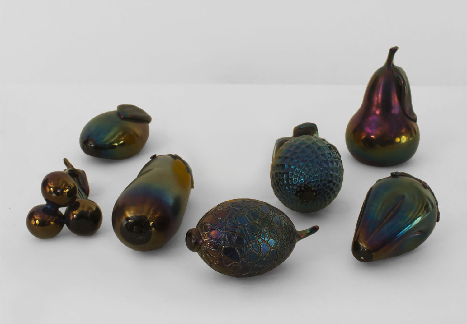 7 Various Italian opalescent blue glass models of fruit and vegetables (PRICED EACH).