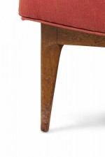 Style: Mid-Century Materials & Techniques: Fabric, upholstered, wood Category: Seating Condition: Wear & discoloration from age & use Good; Wear consistent with age and use